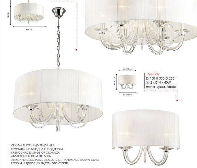 | Цвет плафона / абажура | белая ткань |