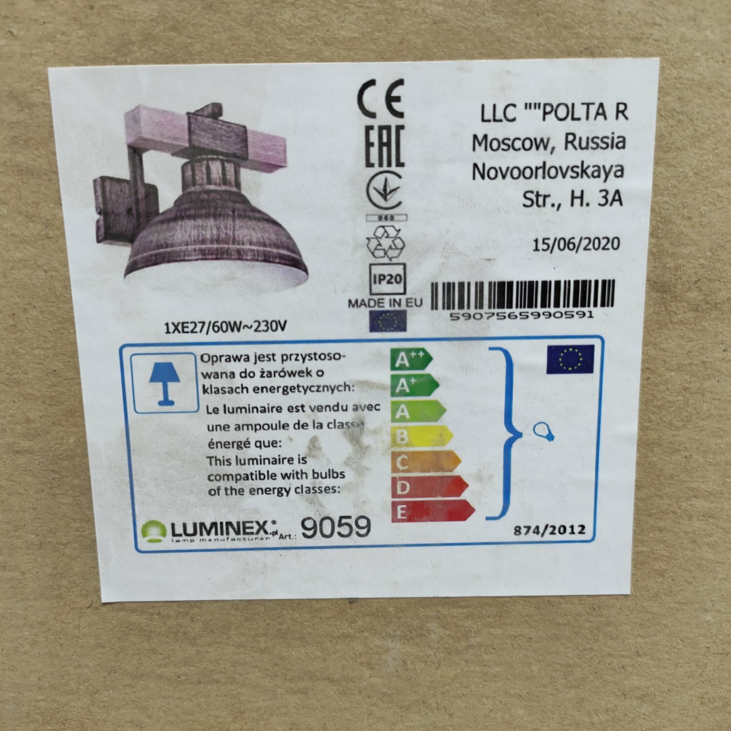 Бра Hakon 9059 - продукт известной компании Luminex (Польша). Имеет максимальную мощность 60 Вт, освещает площадь до 3 кв. м. Отлично подойдет для таких мест, как прихожая и коридор, спальня, кабинет, офис, гостиная. Впишется в интерьеры следующих стилей: лофт, индустриальный.
