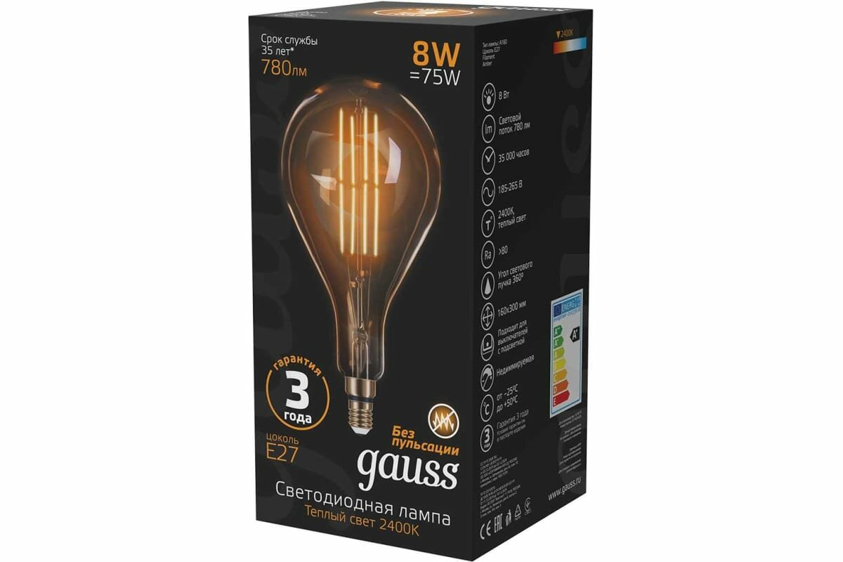 Сервис сравнения цен СкидкаГИД предлагает сравнить цены на товар «Светодиодная лампа Gauss LED Vintage Filament A160 (прозрачный)»