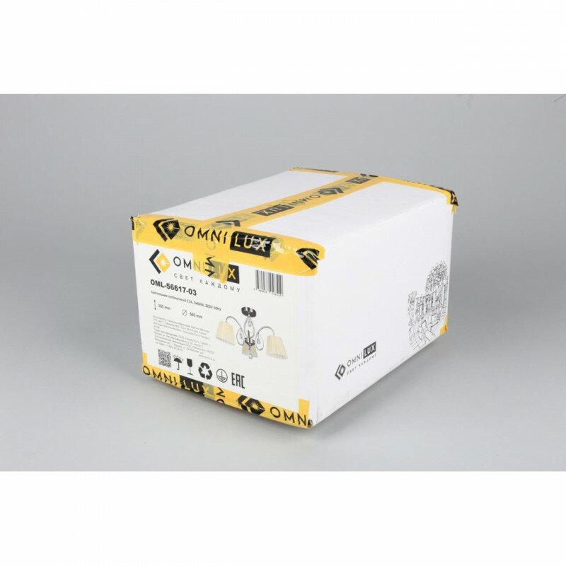Потолочная люстра OML-56617-03 - продукт известной компании Omnilux (Италия). Имеет максимальную мощность 180 Вт, освещает площадь до 9 кв. м. Отлично подойдет для таких мест, как спальня. Впишется в интерьеры следующих стилей: классический.