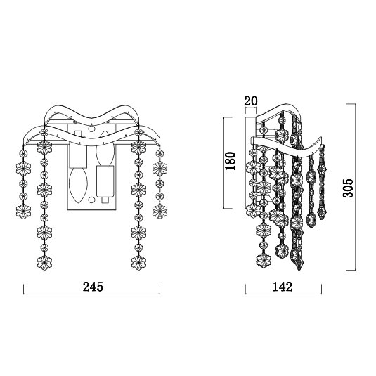 Бра хрустальный Charlotte FR1001WL-02W - продукт известной компании Freya (Германия). Имеет максимальную мощность 80 Вт, освещает площадь до 4 кв. м. Отлично подойдет для таких мест, как гостиная, прихожая и коридор, спальня. Впишется в интерьеры следующих стилей: классический.