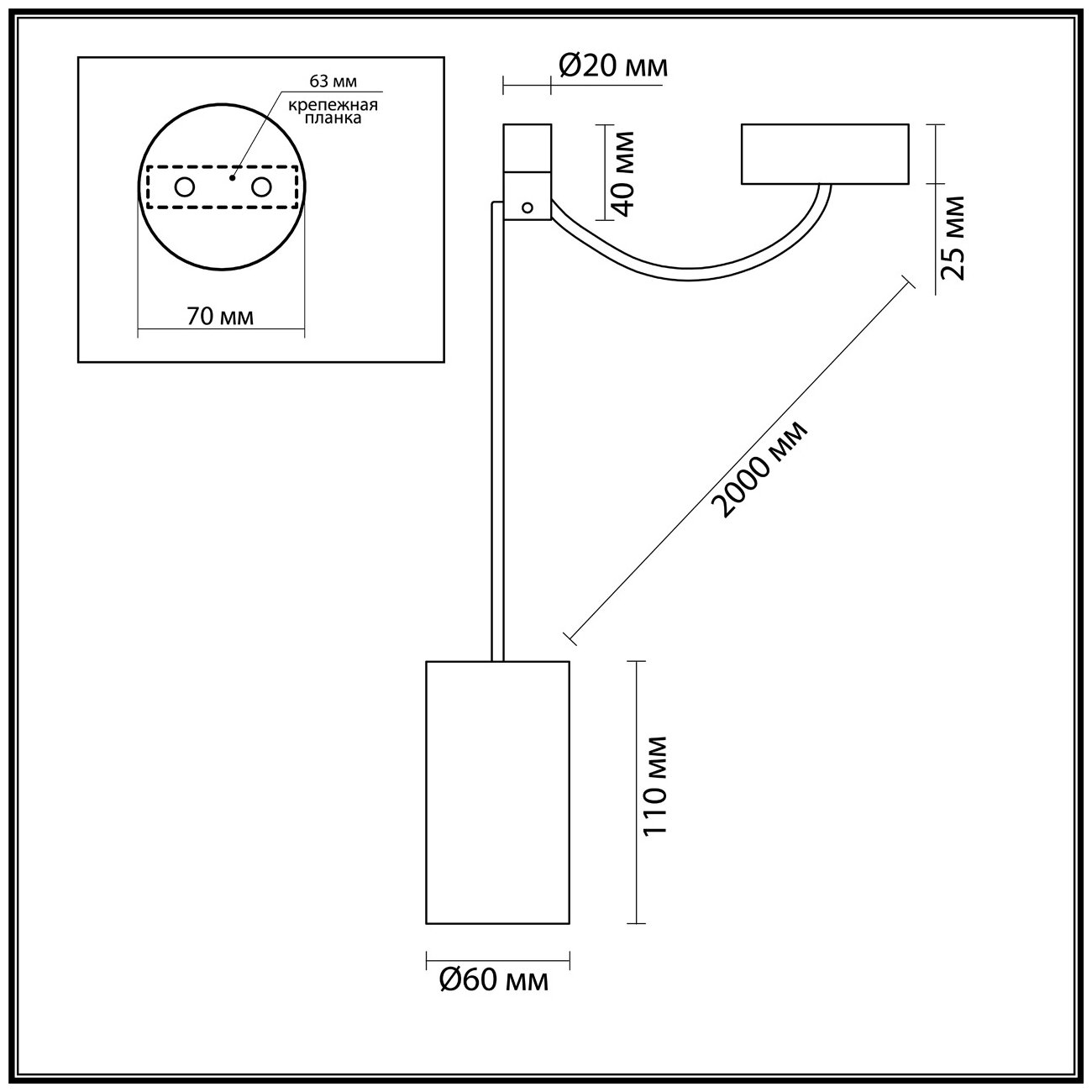 | Длина подвеса, мм | 2000 |