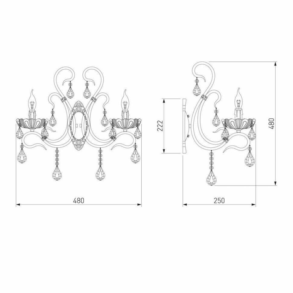 | Элементы оформления | с хрустальными подвесками |