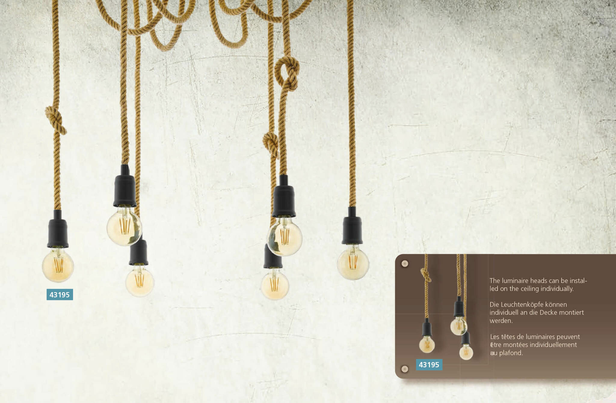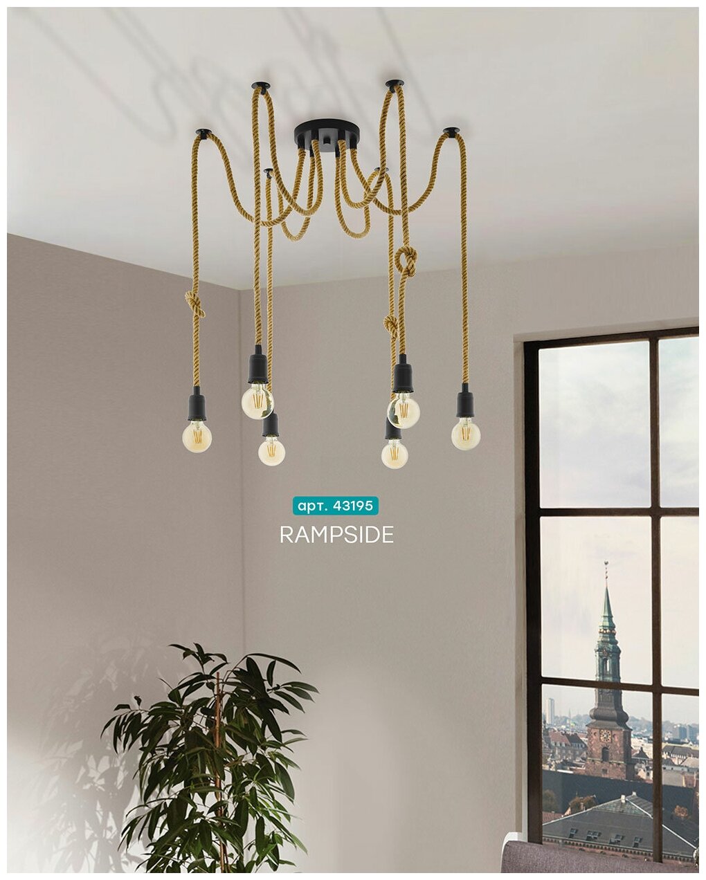 Светильник ''Eglo'' - австрийское качество, стильный дизайн. Для изготовления светильников используются качественные материалы и современные технологии. Стильная серия ''Rampside'' с использованием канатных веревок и дутой форма плафонов. Стильное и смелое решение для интерьера.