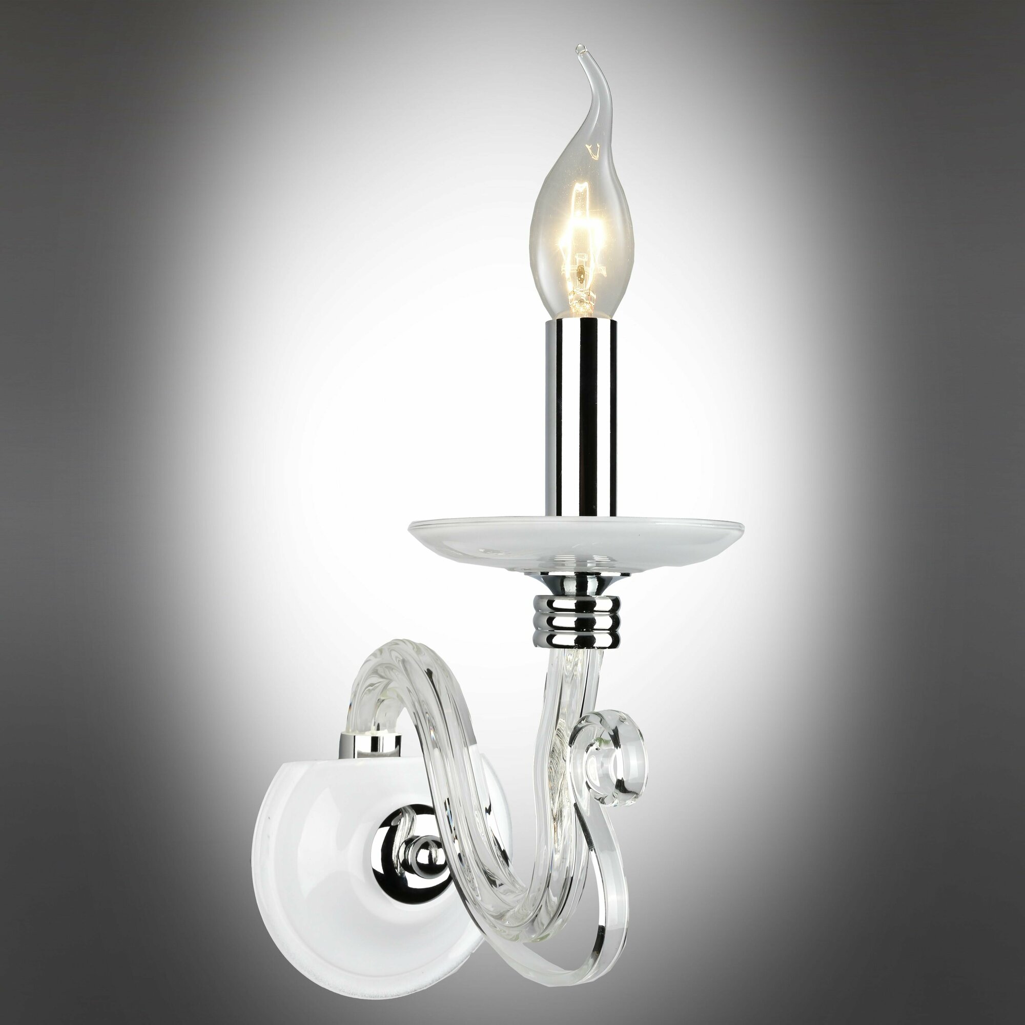 Бра Omnilux OML-79301-01 крепится к стене с помощью специальной пластины, которая не способна нанести вред отделке поверхности. Нагрузка от массы осветительного прибора передается через металлический элемент, выступающий в роли кронштейна. Поверх него устанавливается стеклянная крышка, которая практически полностью скрывает составляющую из металла. Поддерживающий элемент изготовлен из стекла витой формы, из этого же материала с белым окрашиванием производится чаша. Остальные элементы металлические.