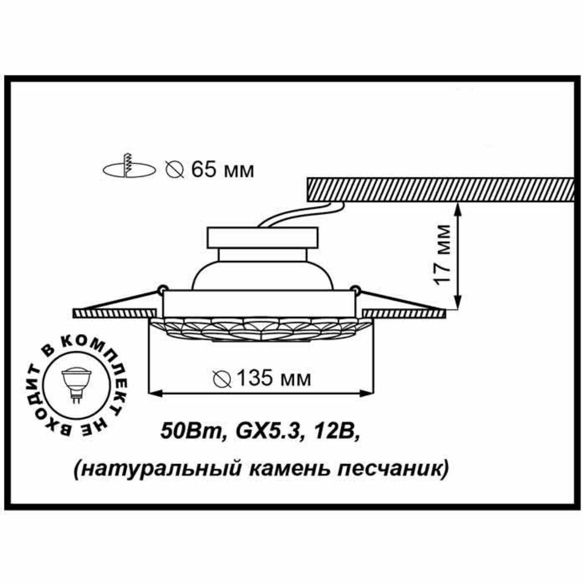 Встраиваемый светильник - продукт известной компании Novotech (Венгрия). Имеет максимальную мощность 50 Вт. Отлично подойдет для таких мест, как кафе, кухня. Впишется в интерьеры следующих стилей: классический.