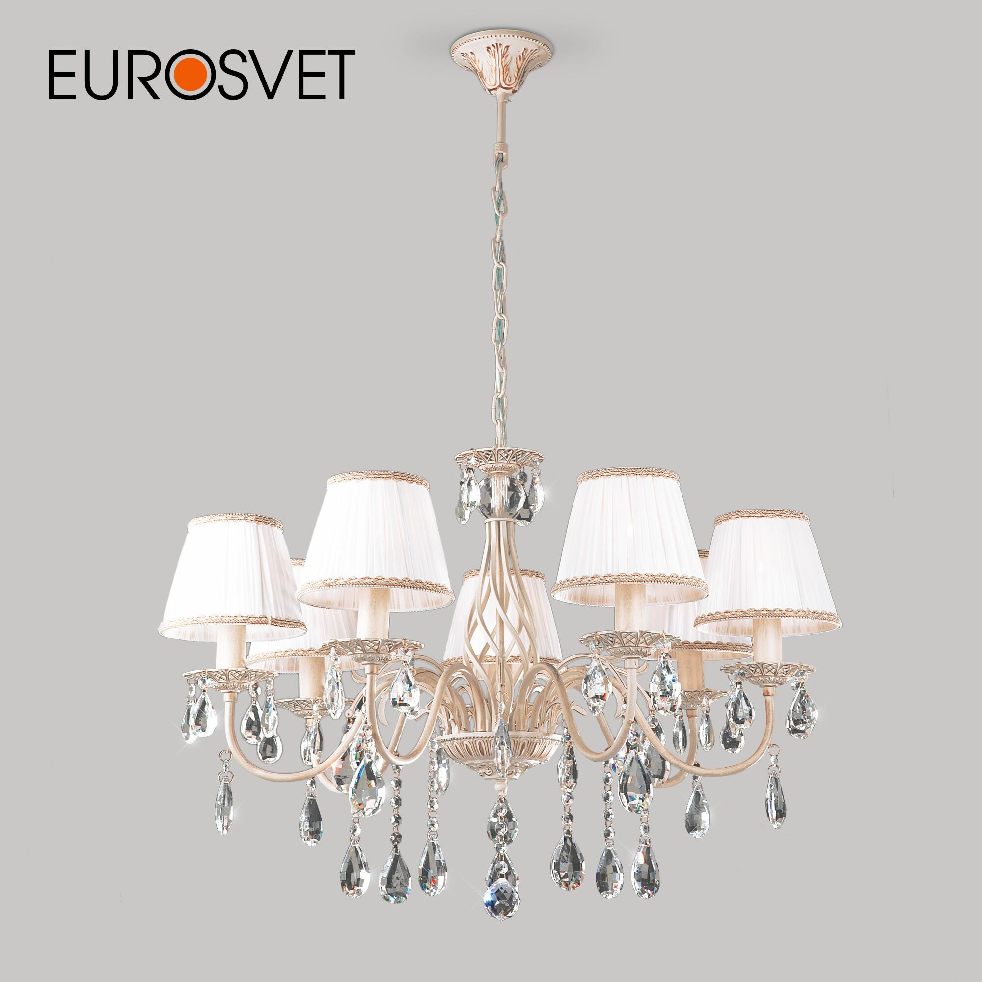 Подвесная люстра Eurosvet (3637-7 белый с золотом-прозрачный хрусталь Strotskis)