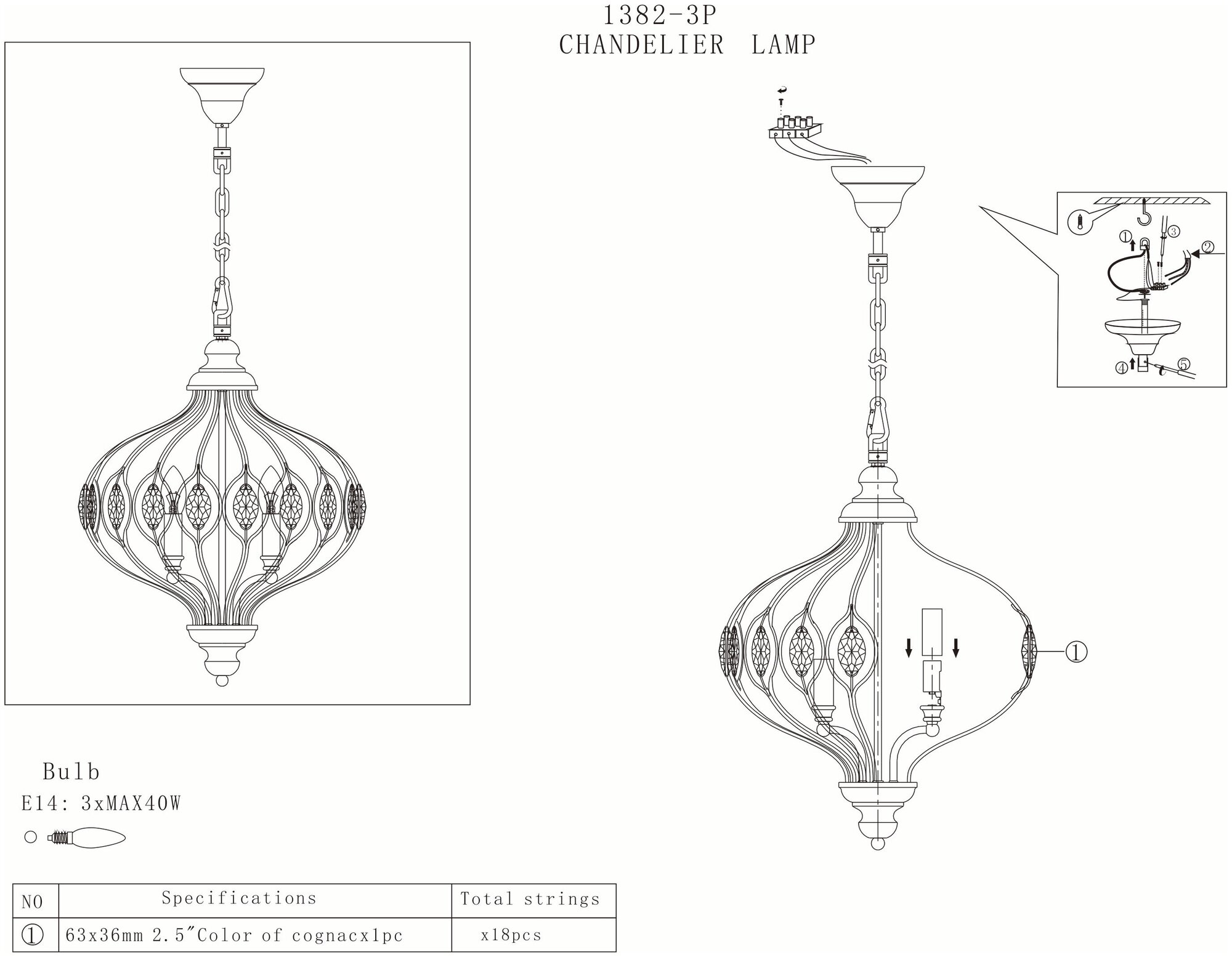 | Допустимая мощность ламп, Вт | 40 |