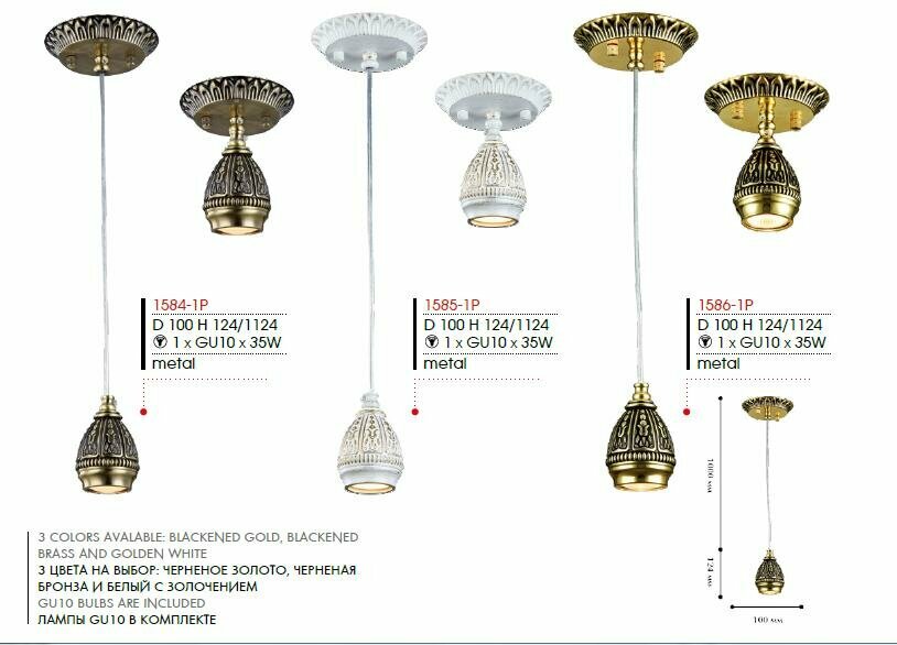 Светильник 2 в 1 подвесной/потолочный Sorento 1585-1P - продукт известной компании Favourite (Германия). Имеет максимальную мощность 35 Вт, освещает площадь до 2 кв. м. Отлично подойдет для таких мест, как кухня, кафе, спальня. Впишется в интерьеры следующих стилей: классический.