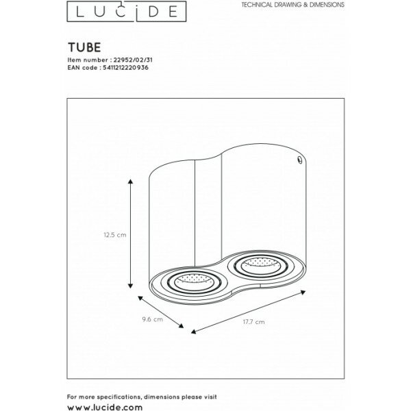 Точечный накладной светильник Tube 22952/02/31 - продукт известной компании Lucide (Бельгия). Имеет максимальную мощность 100 Вт, освещает площадь до 7 кв. м. Отлично подойдет для таких мест, как кафе, кухня. Впишется в интерьеры следующих стилей: модерн.
