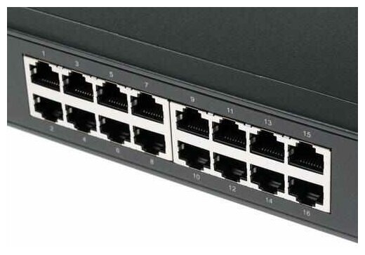 - Небольшая цена, 16 гигабитных портов.