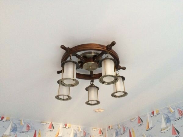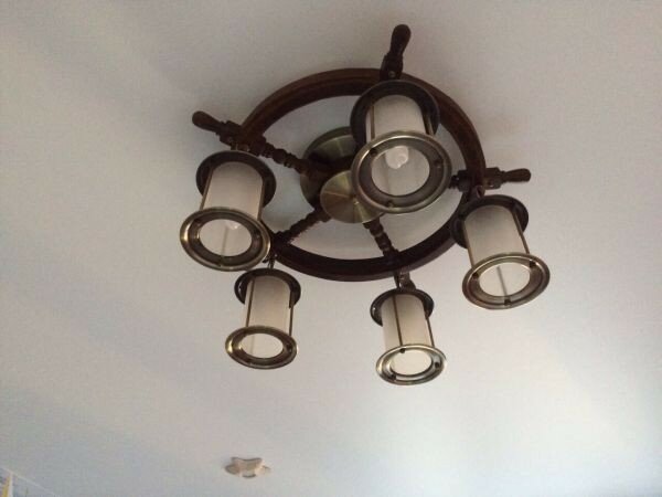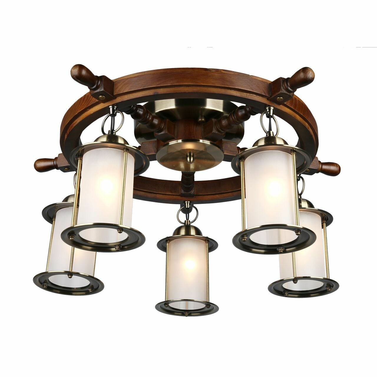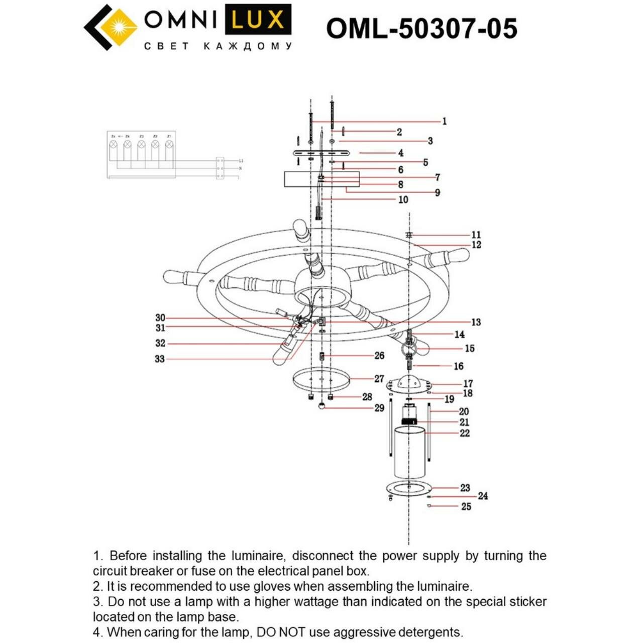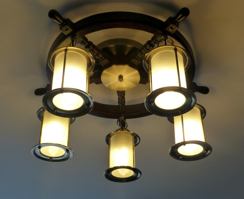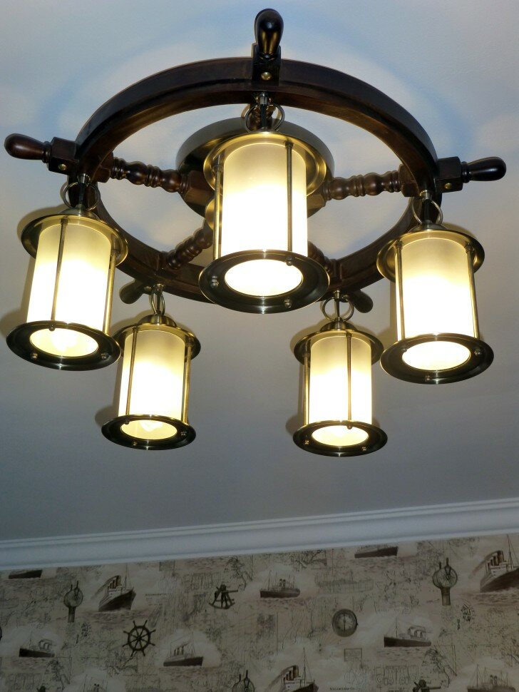 Люстра штурвал OML-50307-05 - продукт известной компании Omnilux (Италия). Имеет максимальную мощность 300 Вт, освещает площадь до 15 кв. м. Отлично подойдет для таких мест, как гостиная, прихожая и коридор. Впишется в интерьеры следующих стилей: классический, морской.