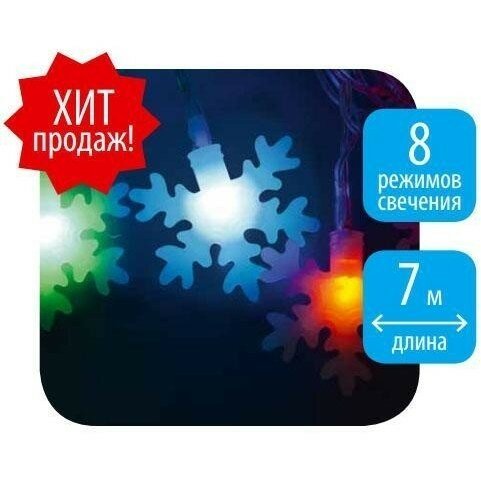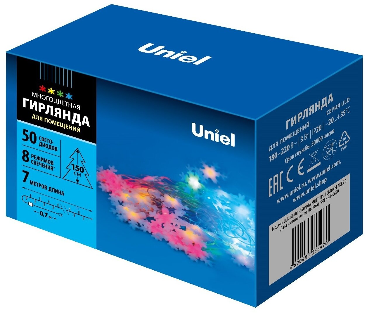 Гирлянда LED RGB Снежинки-3 (7м.) с контроллером Uniel ULD-S0700-050/DTA (7936) ULD-S0700-050/DTA MULTI IP20 SNOWFLAKES-3