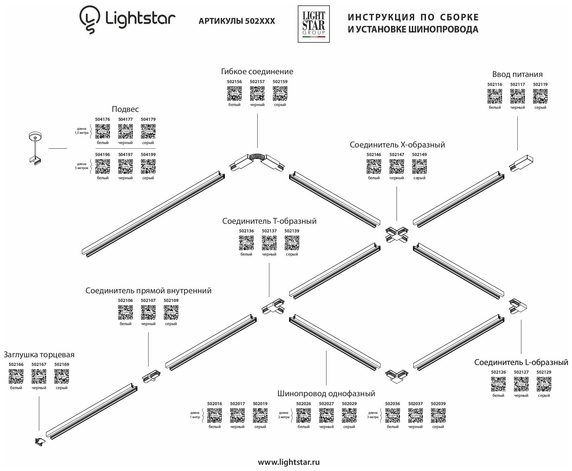 Питание боковое трековое однофазное - продукт известной компании Lightstar (Италия).
