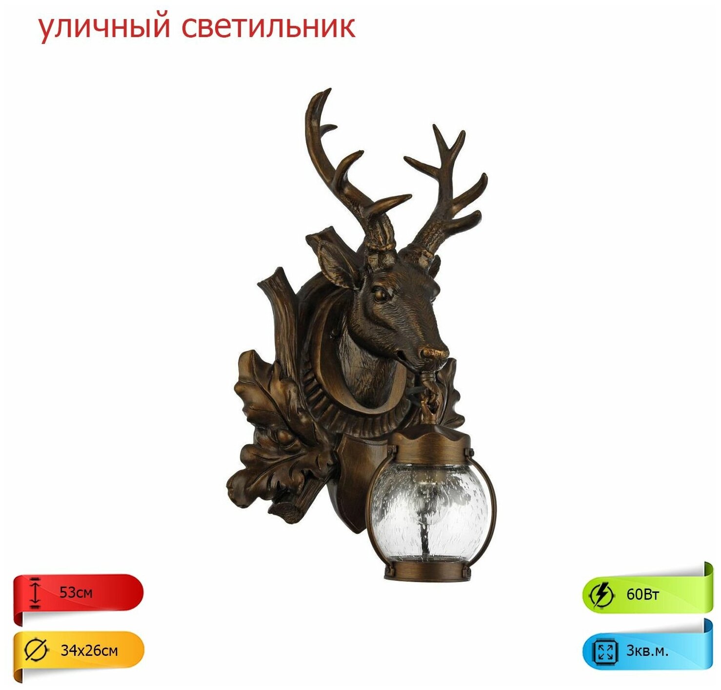 Настенный фонарь уличный - продукт известной компании Favourite (Германия). Имеет максимальную мощность 60 Вт, освещает площадь до 3 кв. м. Отлично подойдет для таких мест, как дача, фасад, веранда и беседка. Впишется в интерьеры следующих стилей: арт-деко, этнический.
