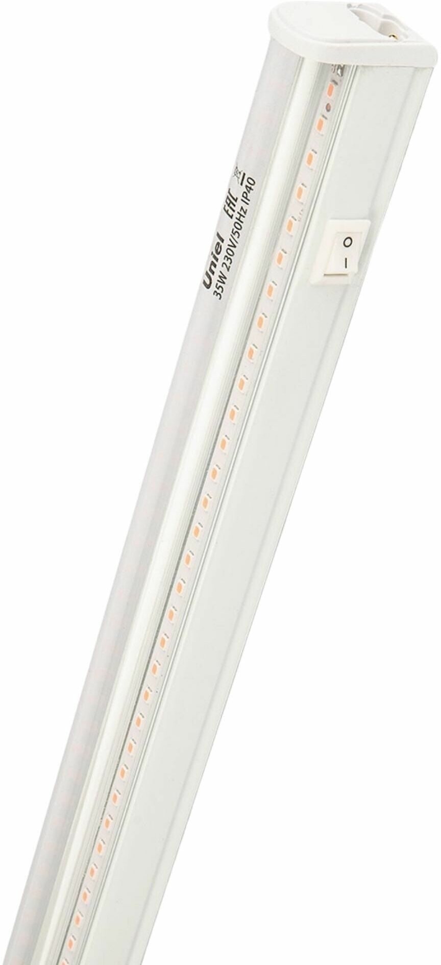 Светильник для растений светодиодный с выключателем - продукт известной компании Uniel (Китай). Имеет максимальную мощность 35 Вт, освещает площадь до 7 кв. м. Отлично подойдет для таких мест, как гостиная, кафе, кухня, кабинет, дача. Впишется в интерьеры следующих стилей: современный.