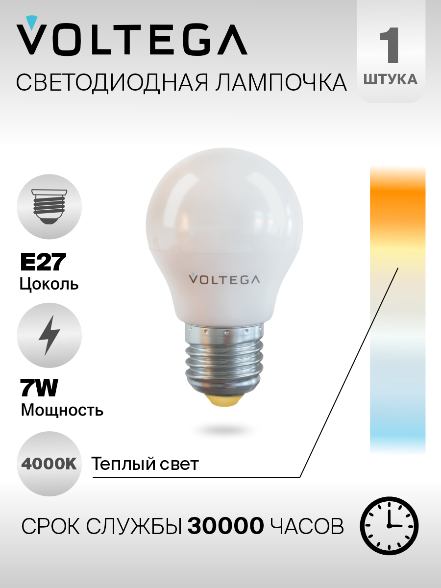На сегодняшний день товар «Лампа светодиодная Voltega E27 7W 4000К матовая VG2-G45E27cold7W (7053)» можно купить с кешбеком в 1 магазине: Яндекс.Маркет