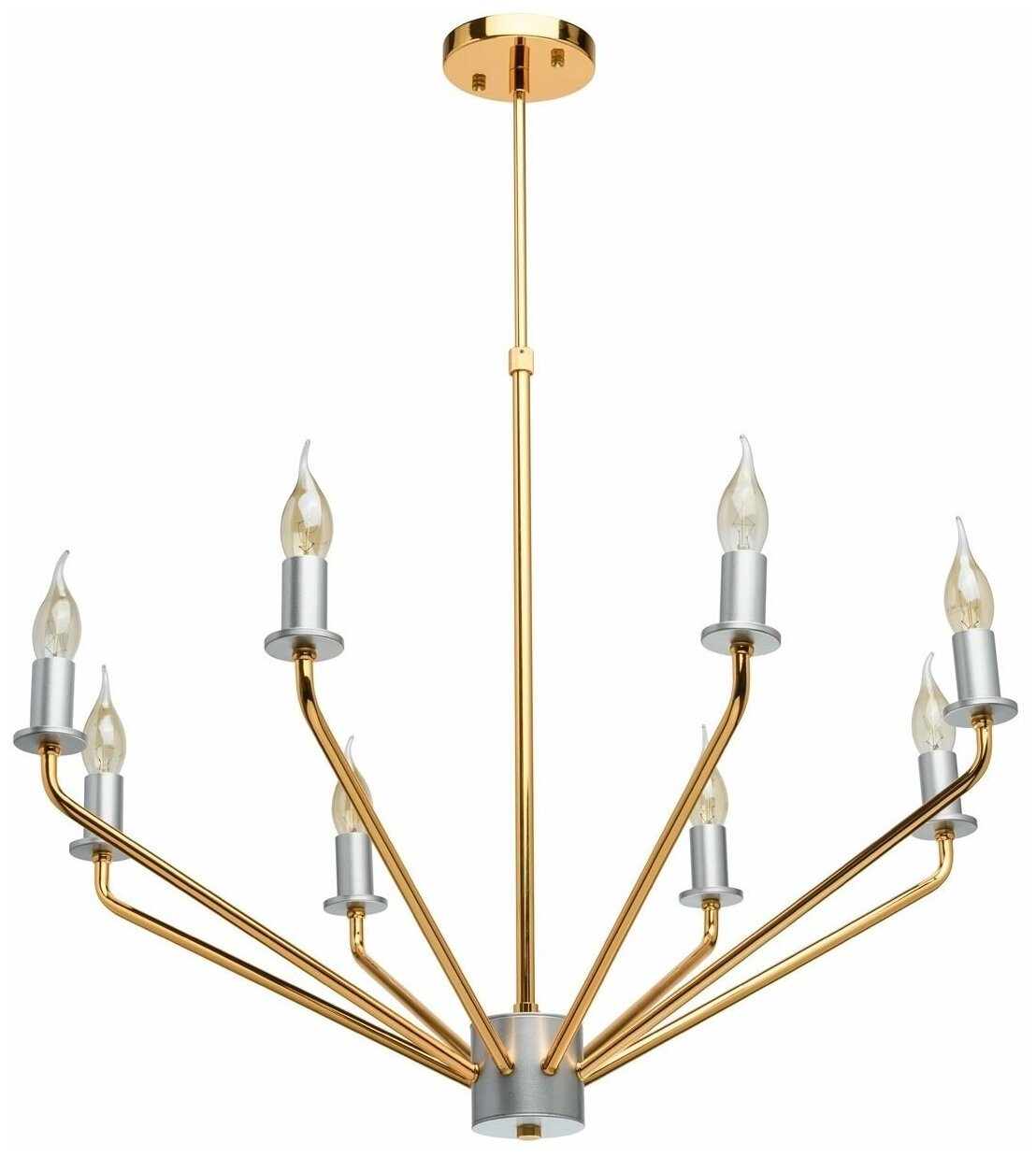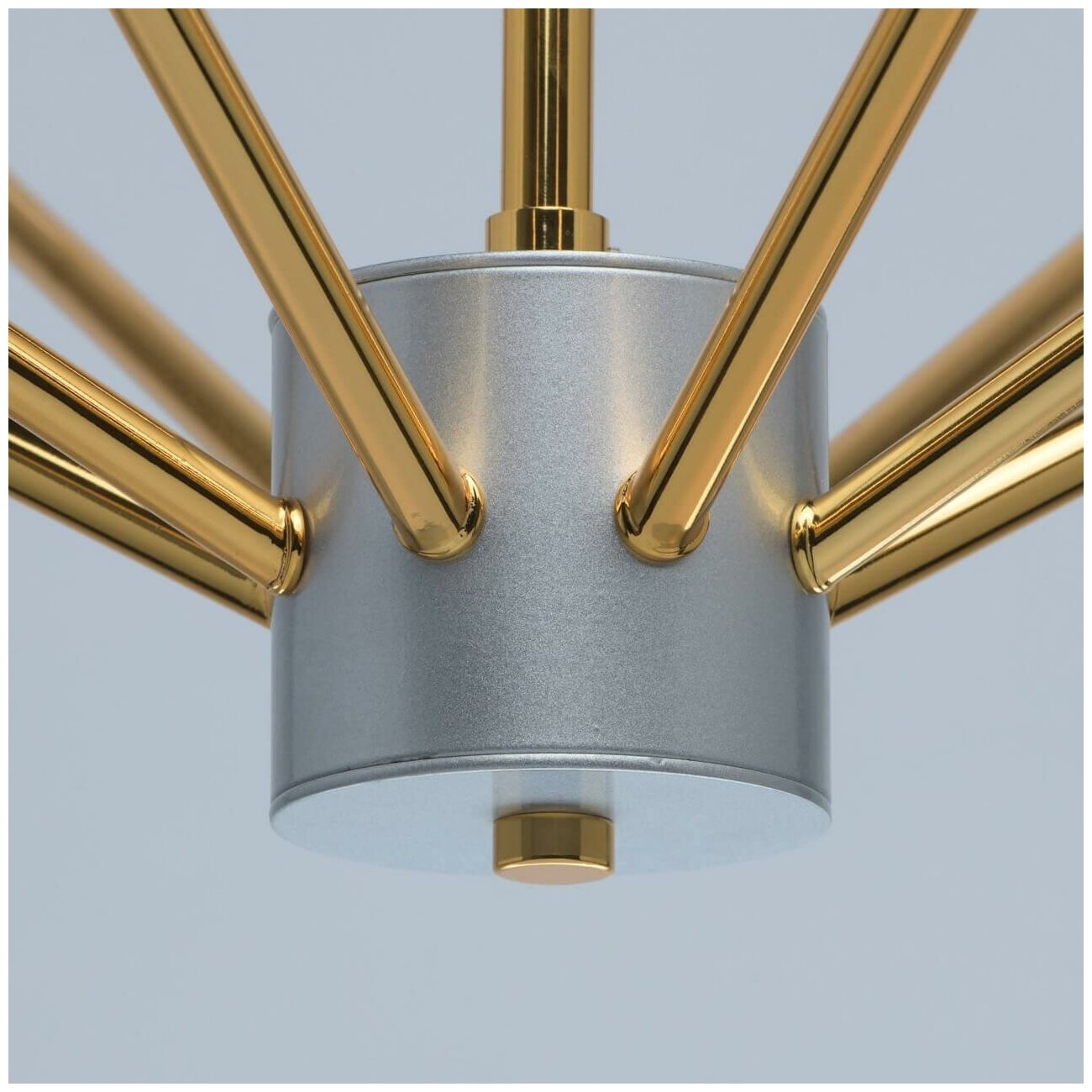 Основание светильника выполнено из металла и гальванизировано в цвет золота. Напатронники и корпус светильника гальванизированы в цвет серебра.