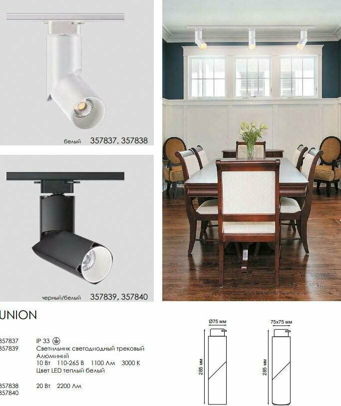 Трековый светильник Novotech Тrack Lights Union 357837