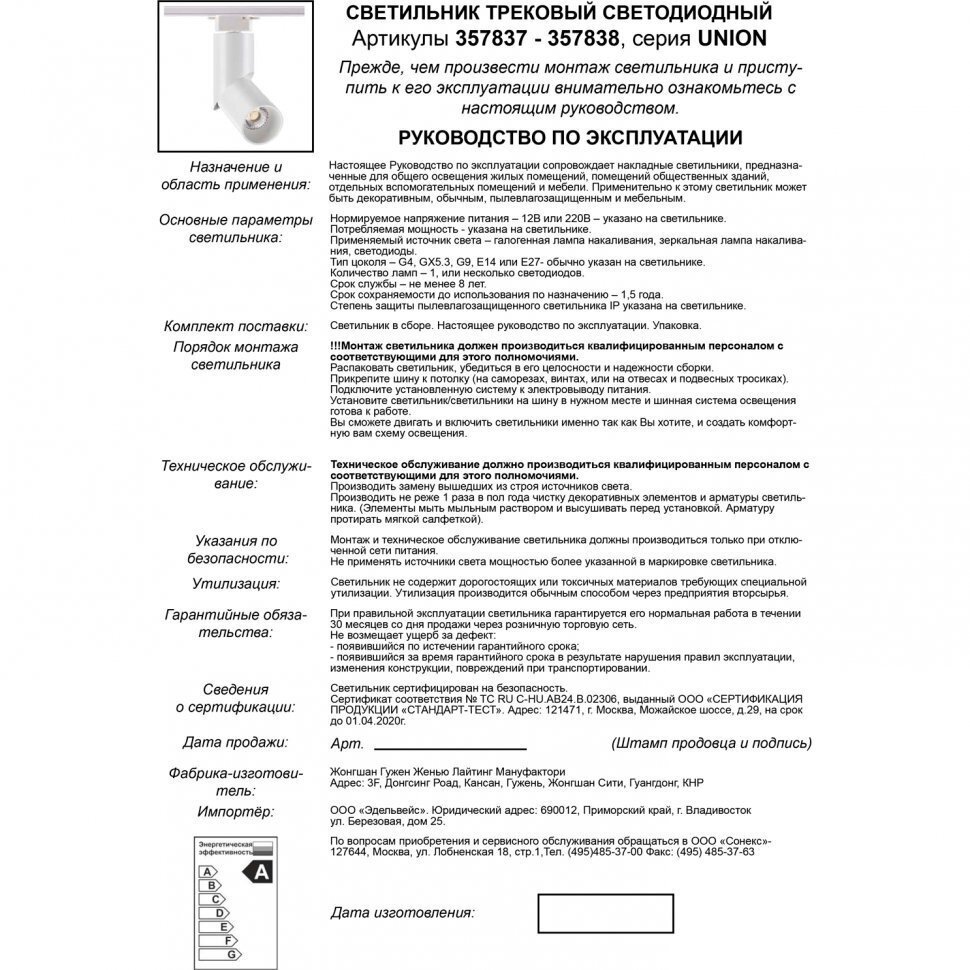 На сегодняшний день товар «Трековый светильник Novotech Тrack Lights Union 357837» можно купить с кешбеком в 1 магазине: Яндекс.Маркет