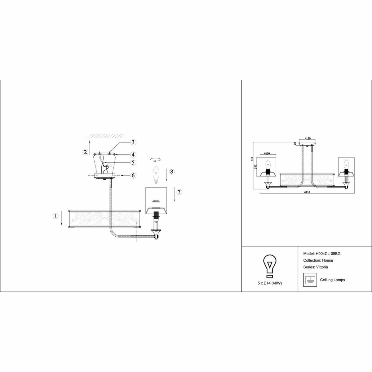 Потолочная люстра Vittoria H004CL-05BG - продукт известной компании Maytoni (Германия). Имеет максимальную мощность 200 Вт, освещает площадь до 10 кв. м. Отлично подойдет для таких мест, как гостиная, спальня, кухня, кабинет. Впишется в интерьеры следующих стилей: модерн, арт-деко.