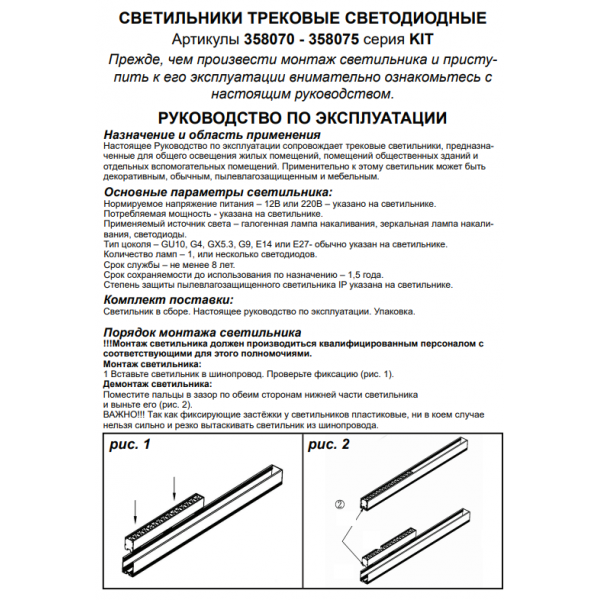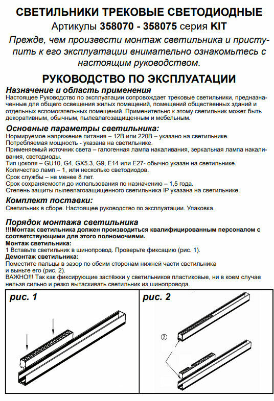 | Назначение | Трековый светодиодный светильник для низковольтного шинопровода |