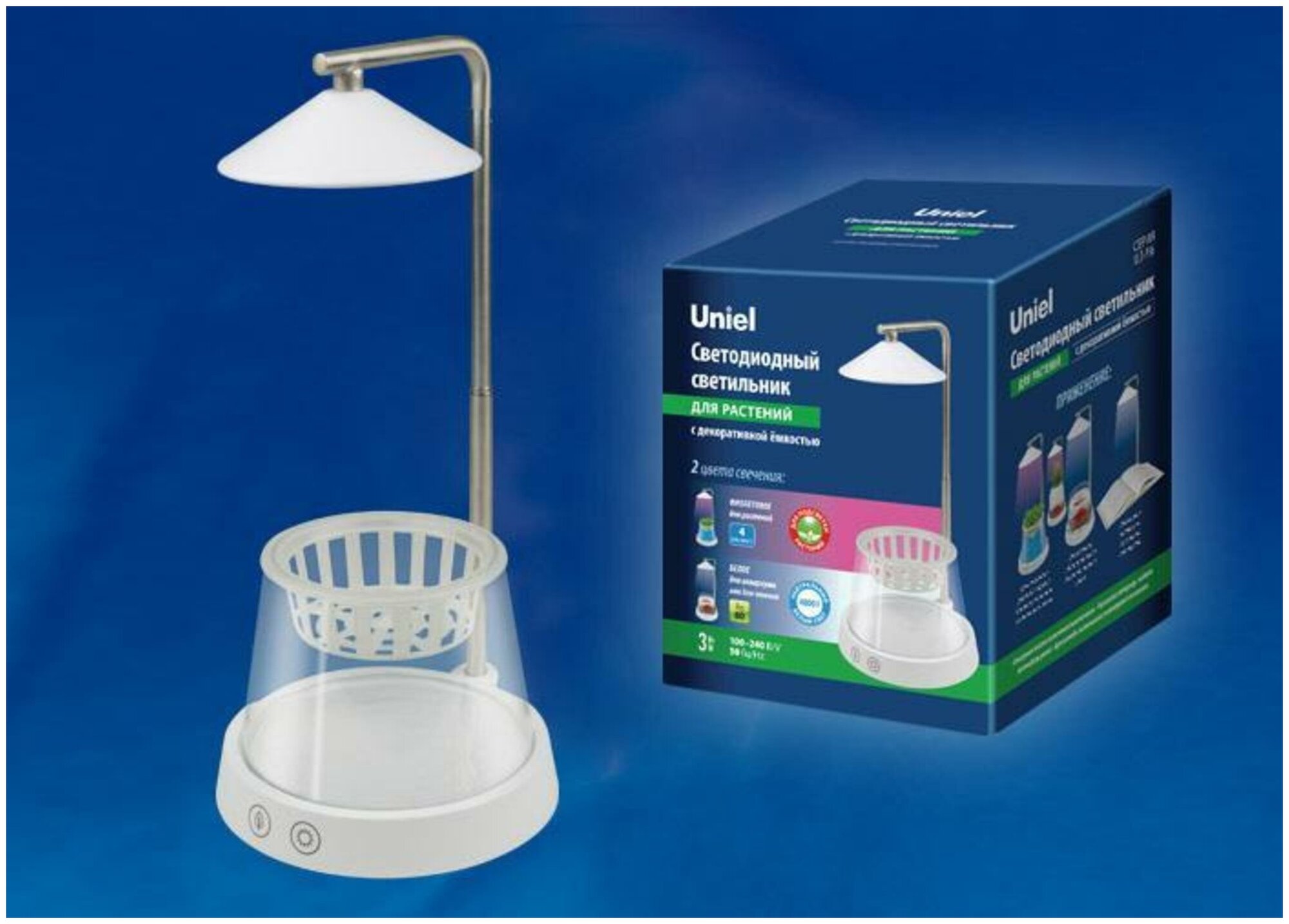 Настольная лампа для растений светодиодная с выключателем - продукт известной компании Uniel (Китай). Имеет максимальную мощность 36 Вт, освещает площадь до 7.2 кв. м. Отлично подойдет для таких мест, как гостиная, кухня, офис. Впишется в интерьеры следующих стилей: современный.