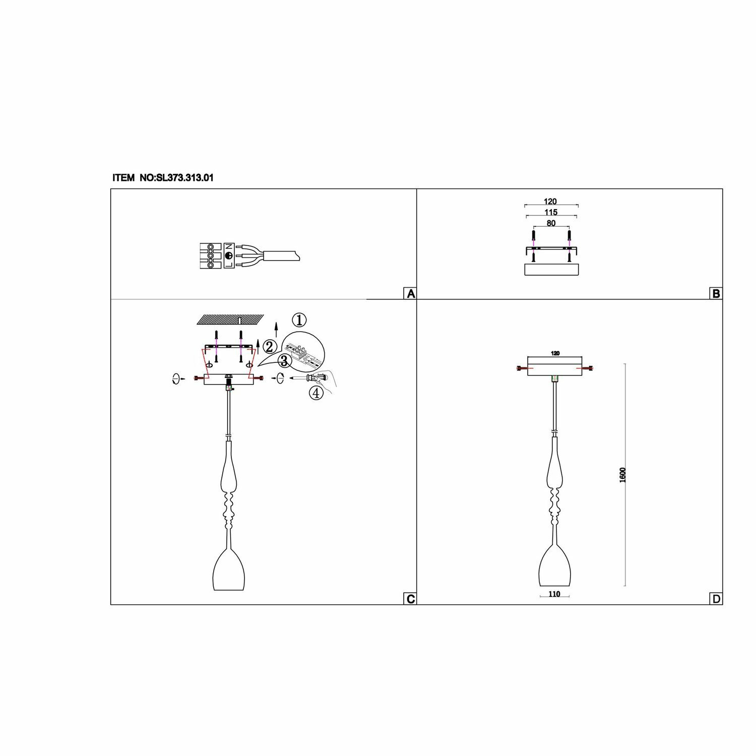 | Длина подвеса, мм | 1000 |