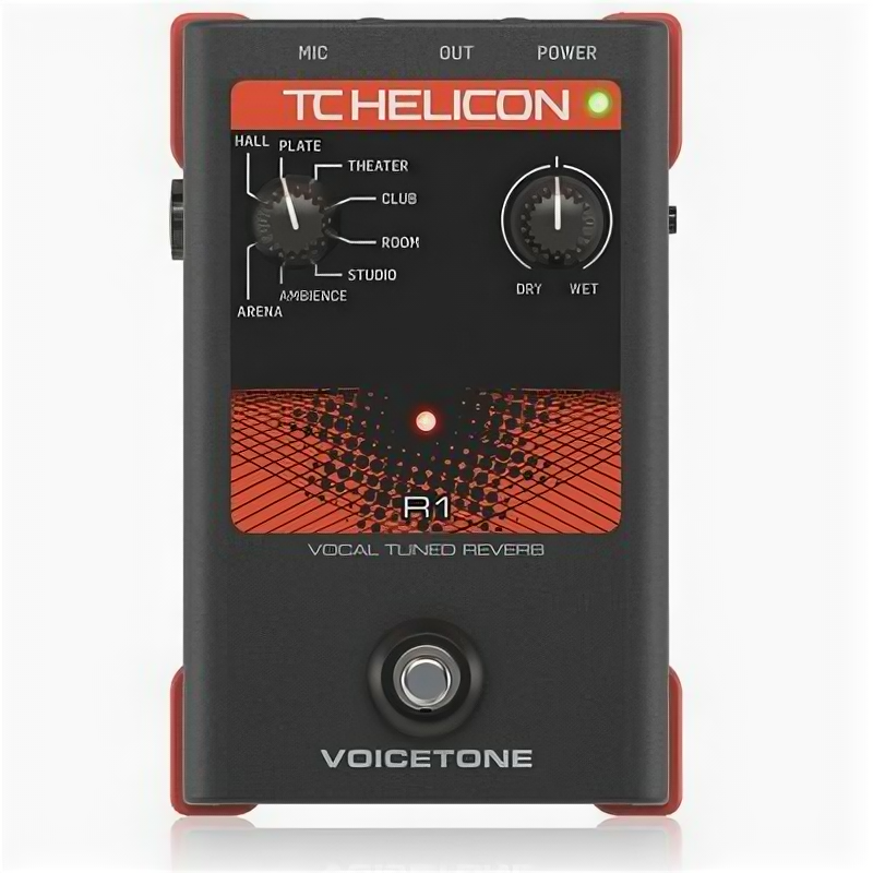 TC HELICON – напольная вокальная педаль с эффектом реверберации. Позволяет добавлять этот эффект к вокалу во множестве вариантов: начиная от большого концертного зала, заканчивая небольшими выступлениями или индивидуальными занятиям.