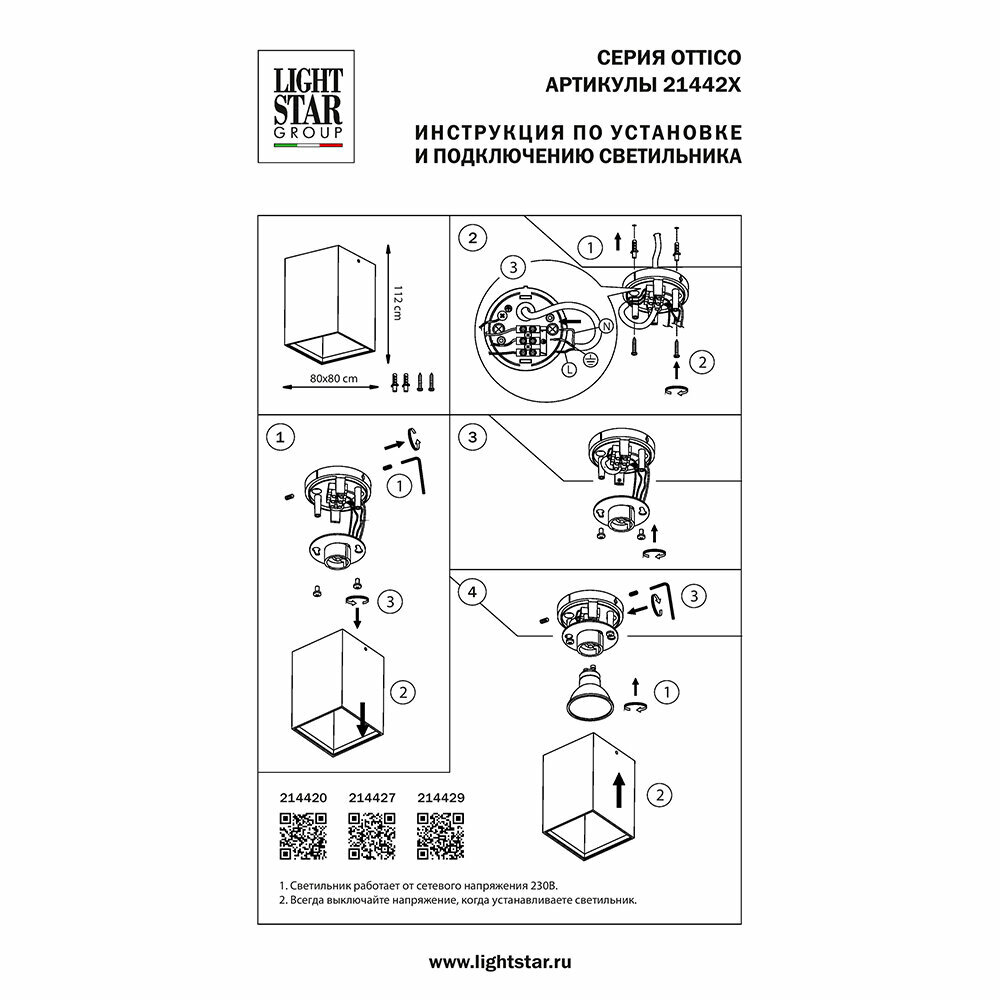 Светильник точечный накладной декоративный под заменяемые галогенные или LED лампы Ottico qua Lightstar Ottico qua 214427