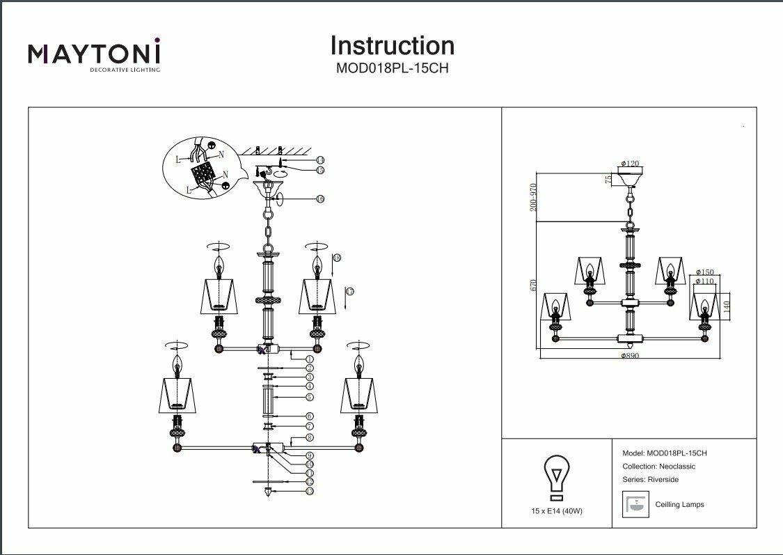 - Обзор люстры Maytoni Riverside MOD018PL-15CH