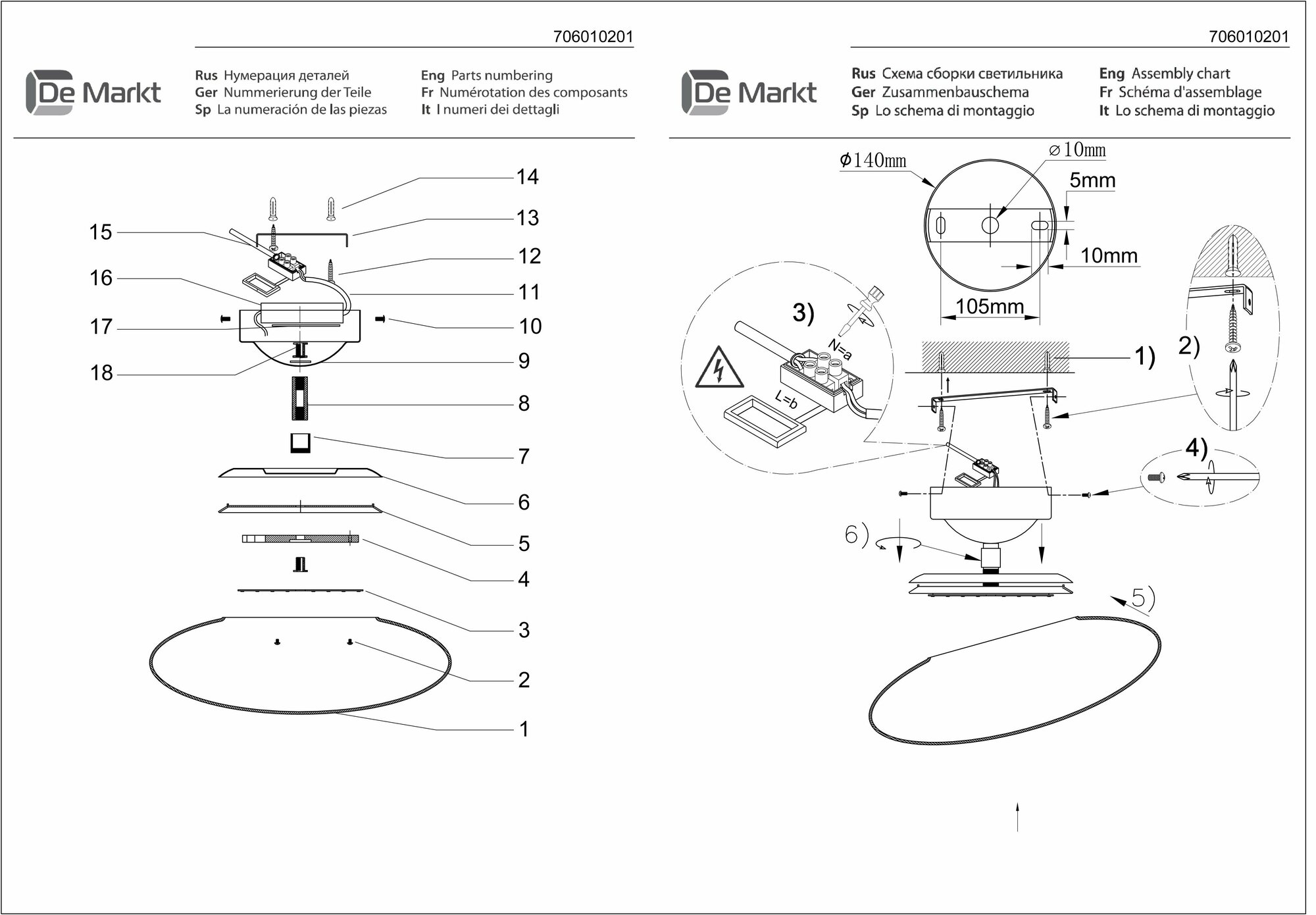 Сервис сравнения цен СкидкаГИД предлагает сравнить цены на товар «Потолочный светодиодный светильник De Markt (706010201)»