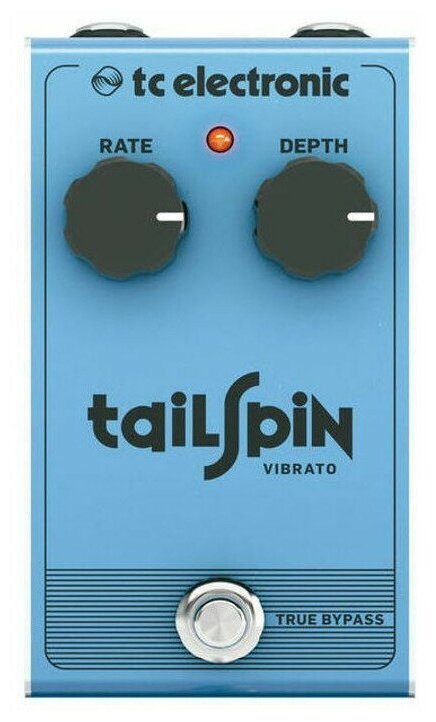 TC ELECTRONIC TAILSPIN VIBRATO - педаль эффекта вибрато с легендарной аналоговой электронной схемой BBD (Bucket Brigade Design). Эта модель дает возможность получить классическое вибрато в стиле восьмидесятых, звучащее очень натурально, красиво и мелодично. Педаль отлично проявит себя в любых музыкальных стилях. Гибкие возможности настройки позволяют обогатить Ваше звучание широкой палитрой винтажных тембров. Управление TAILSPIN VIBRATO просто и понятно: всего два регулятора. Rate настраивает скорость вибрато, Depth определяет интенсивность применяемого эффекта. Режим True Bypass гарантирует, что эффект не влияет на звук инструмента, когда не используется. Педаль заключена в прочный цельнометаллический корпус «Built-like-a-tank» ярко-голубого цвета, способный выдержать не самое бережное обращение на концертах и в турах. Удобна для использования в педалборде, расположение разъемов позволяет проводам не путаться под ногами, а также устанавливать TAILSPIN VIBRATO в самые компактные модели педалбордов. Электропитание – от батарейки «Крона» 9 вольт или сетевого адаптера TC Electronic Powerplug 9 (приобретается отдельно).