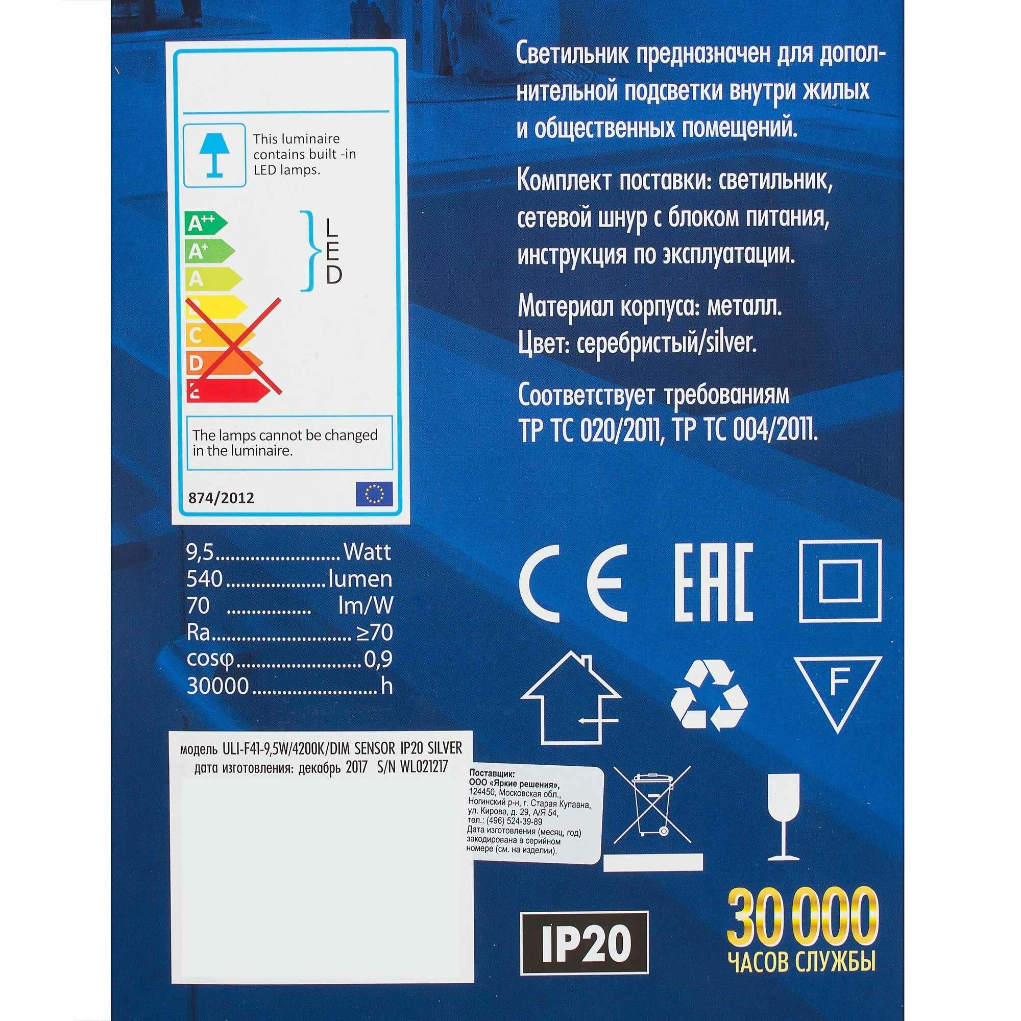 Модель: ULI-F41-9,5W4200K/DIM SENSOR IP20 SILVER