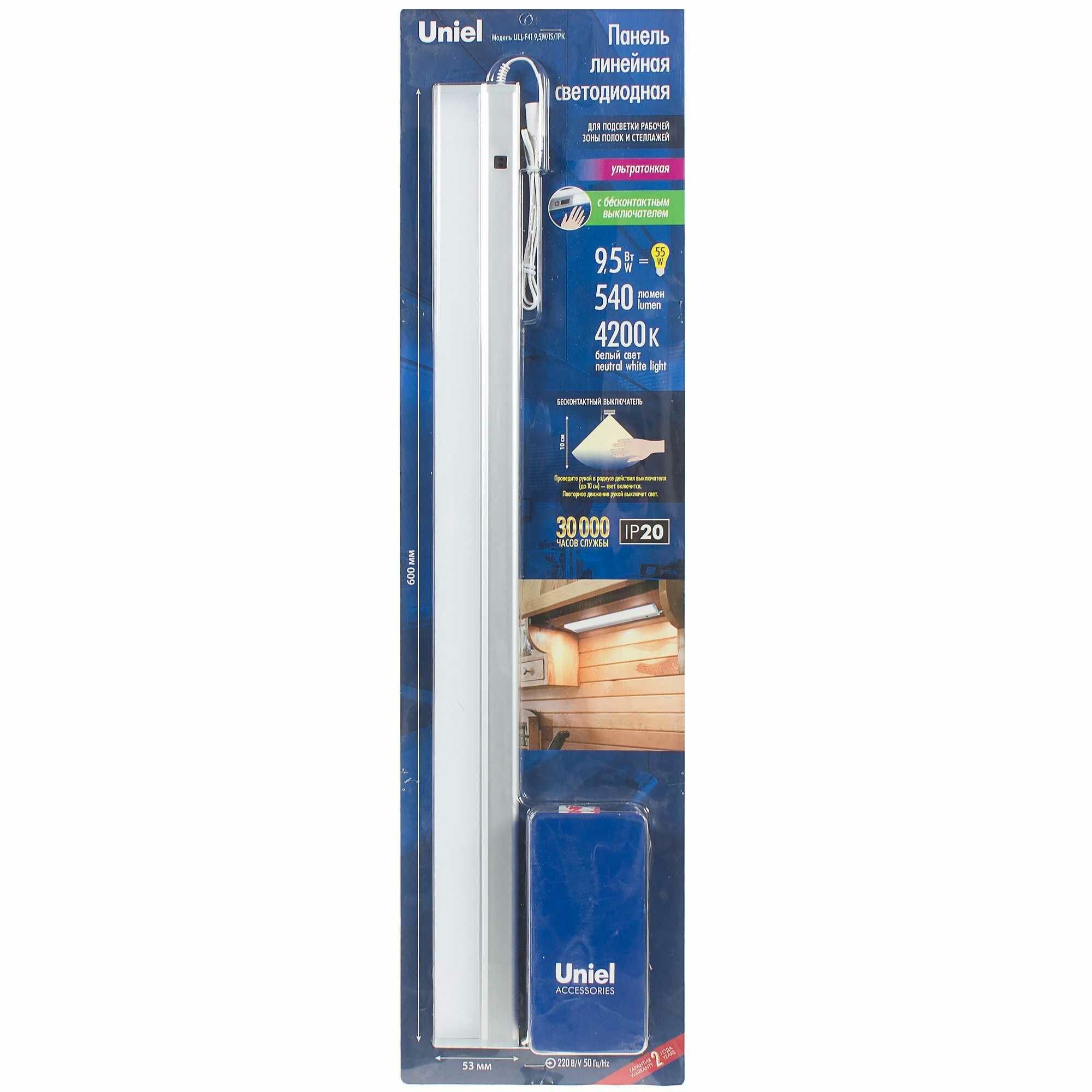 Мебельный светодиодный светильник (UL-00002884) Uniel ULI-F41-9,5W4200K/DIM SENSOR IP20 SILVER