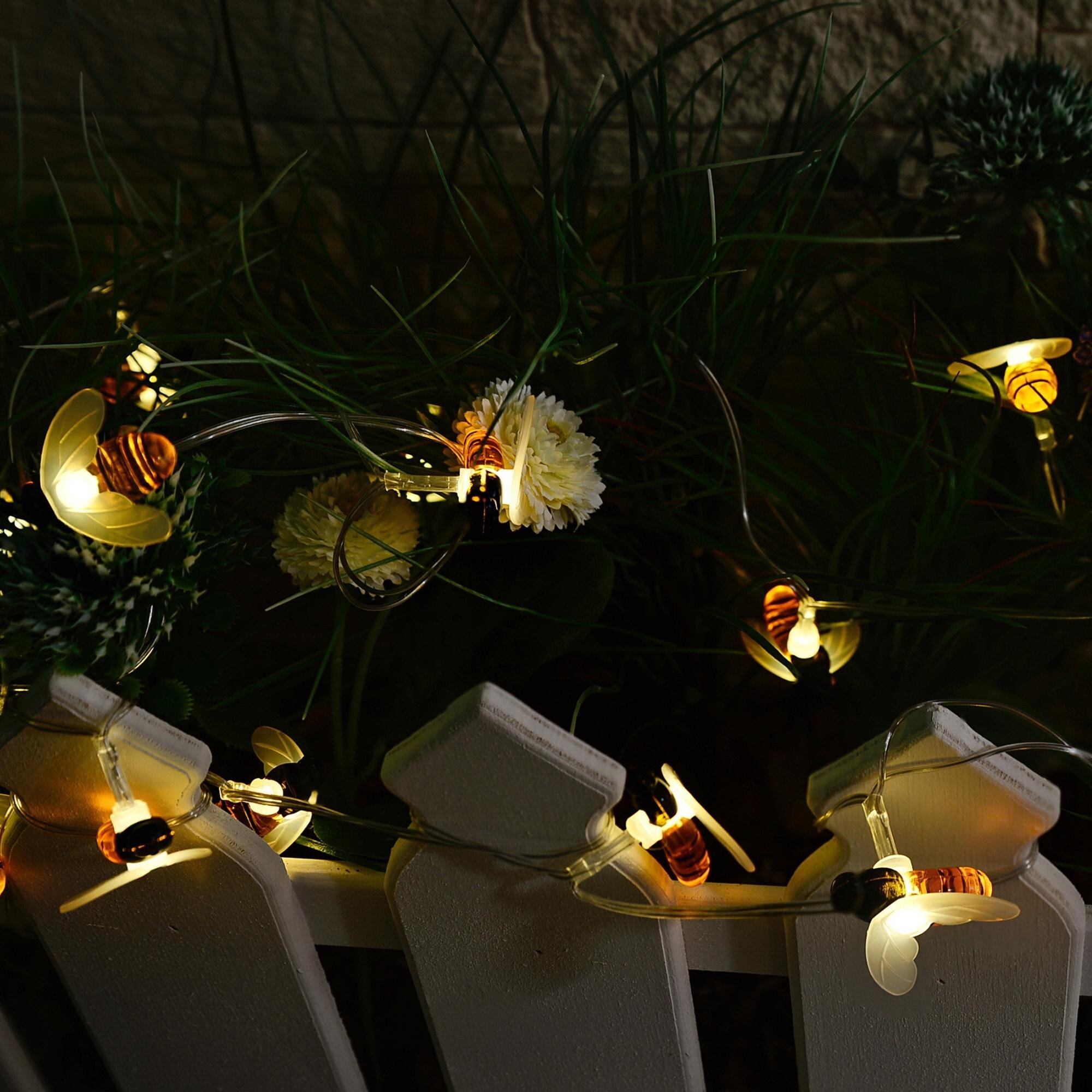 Пчелки – гирлянда на солнечных батареях для сада, которая будет украшать ваш участок и днем и ночью. Этот уличный электроосветительный прибор отличается экономичностью, практичностью, эстетичностью и долговечностью. Особенно эффектно он будет смотреться в сумерках и в ночное время. Вы сможете разместить эти огоньки в траве вашего газона, на стене дома, среди ветвей деревьев и кустов – в любом месте, где захотите. Они радуют глаз и создают уютную романтическую атмосферу.