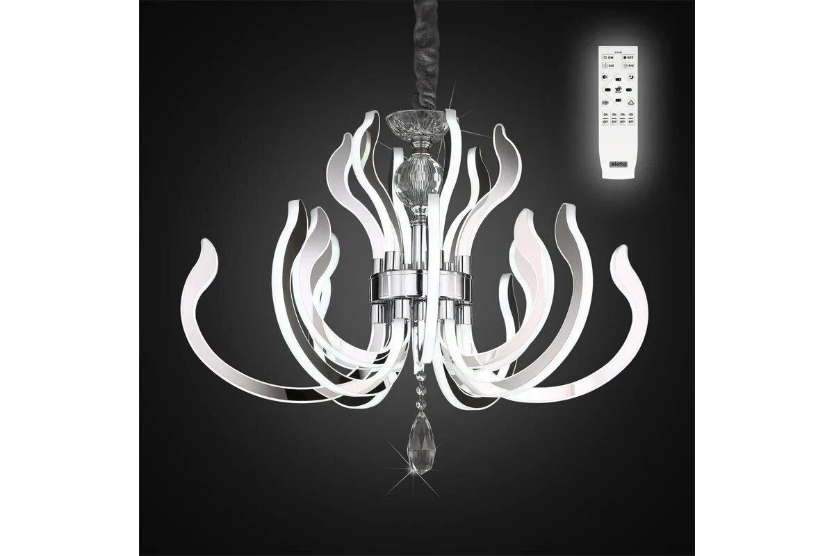 Люстра Citilux EL337P18 серии Miranda. Подчеркнет стиль помещения. Высота 1.3 m. Параметры пылевлагозащиты IP — 20. Плафон акриловый белого цвета, а материал/цвет арматуры металл/хром. Имеются встроенные светодиодные лампы, рассчитанные на весь срок службы светильника. Площадь освещения охватывает 40 m². Идеально подходит для гостиной. Страна происхождения бренда — Дания.