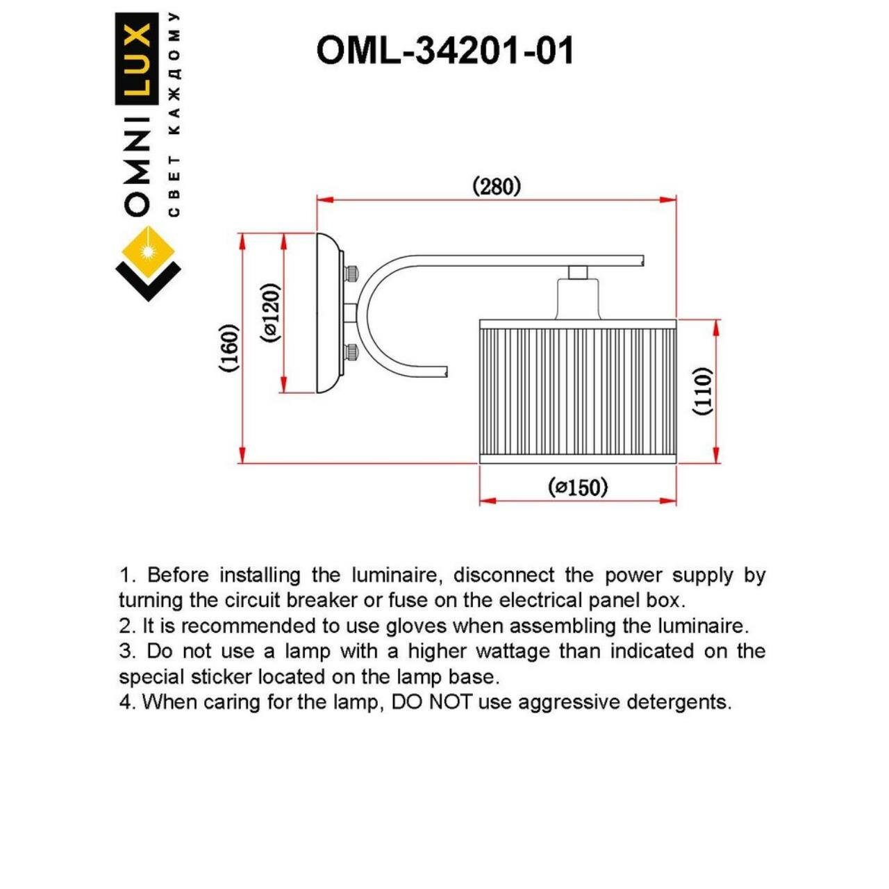 Бра OML-34201-01 - продукт известной компании Omnilux (Италия). Имеет максимальную мощность 40 Вт, освещает площадь до 3 кв. м. Отлично подойдет для таких мест, как гостиная, прихожая и коридор, спальня. Впишется в интерьеры следующих стилей: современный.
