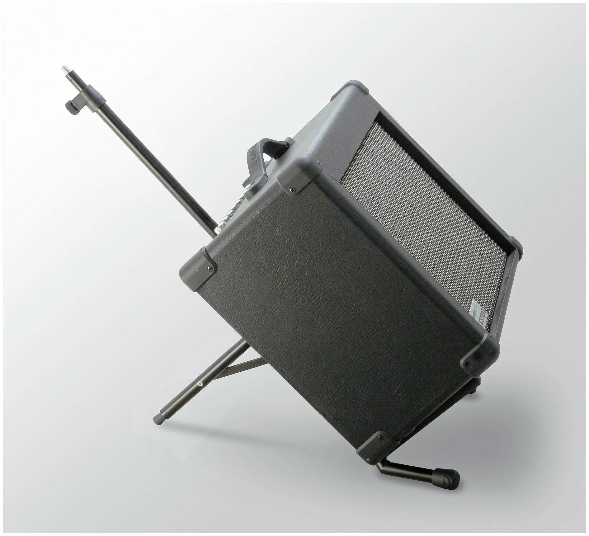 Новая стойка для комбоусилителей от K&M способна без проблем удерживать мониторы, усилители и другое оборудование с максимальным весом 35 кг. Расположенные под углом фронтальные ножки значительно улучшили стабильность и прочность этой стойки, а низкий центр тяжести, обеспечивает устойчивость даже самым габаритным усилителям. Прекрасная регулировка позволяет создать угол наклона в диапазоне от 15 до 28 градусов. Так же существует возможность подзвучивания вашего оборудования – к телескопической трубе можно присоединить штангу с держателем для микрофона.