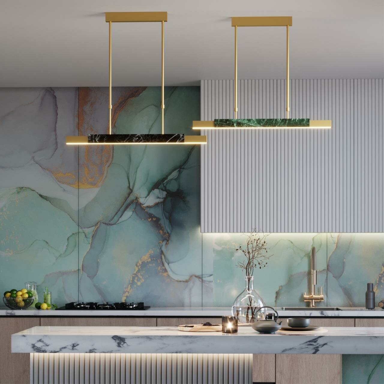 Геометричность является одним из самых актуальных трендов в интерьере на сегодняшний день. Контраст черного металла и матово-белого акрила в сочетании с прямыми четкими линиями светильника создают яркий и запоминающийся образ. Регулируемые подвесы дают возможность легко подогнать светильник по высоте.