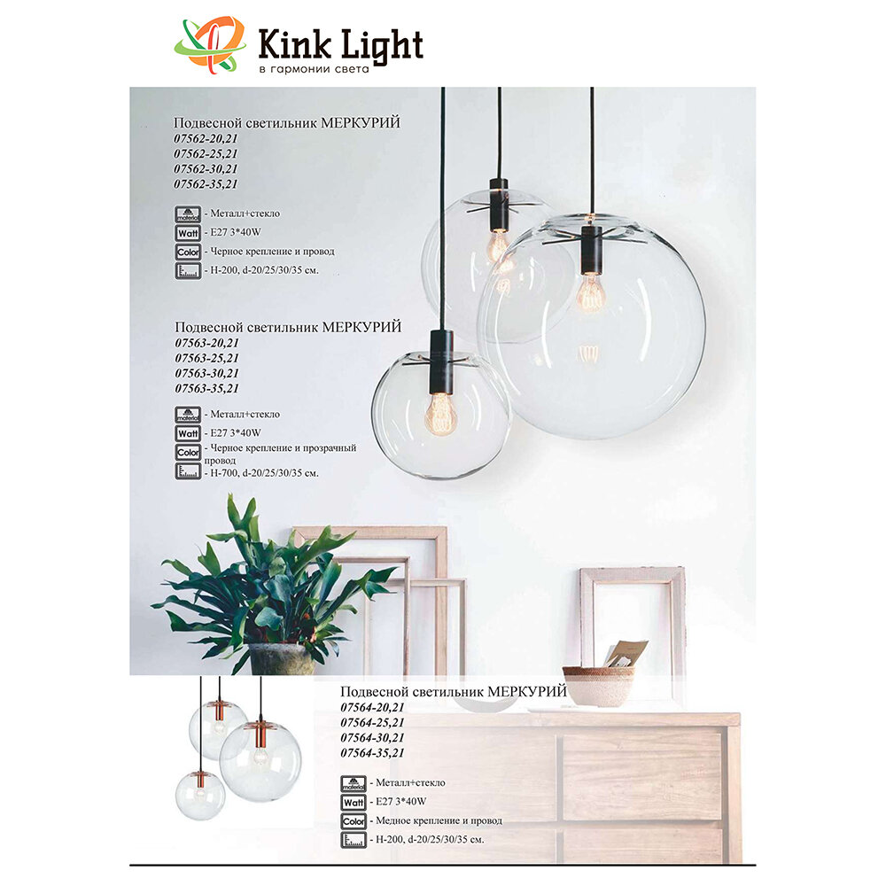 Подвесной светильник Меркурий 07562-30,21 - продукт известной компании Kink Light (Китай). Имеет максимальную мощность 40 Вт, освещает площадь до 2 кв. м. Отлично подойдет для таких мест, как гостиная, кафе, кухня, над кухонным островом, офис. Впишется в интерьеры следующих стилей: современный.