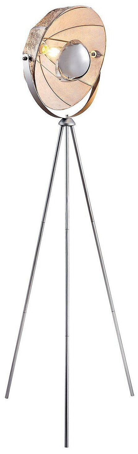 Дизайнерский торшер необычной формы на металлической треноге с полупрозрачным абажуром используется как элемент зонального освещения в интерьерах в стиле Модерн.