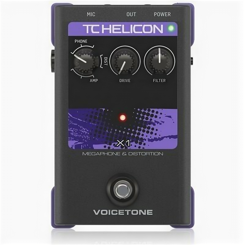 TC HELICON VoiceTone X1 представляет собой напольную вокальную педаль эффекта. Кроме этого педаль имеет эффекты искажения и фильтрации. Есть три переключаемых режима работы - Phone, Distortion, Amp. Для качественной передачи сигнала в электронике педали используется предусилитель студийного качества. Питание педали фантомное. Для подключения к ПК есть порт USB. Коммутация педали при помощи балансных разьемов XLR (вход и выход).