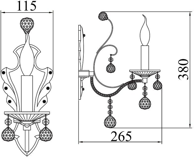 | Элементы оформления | с хрустальными подвесками |