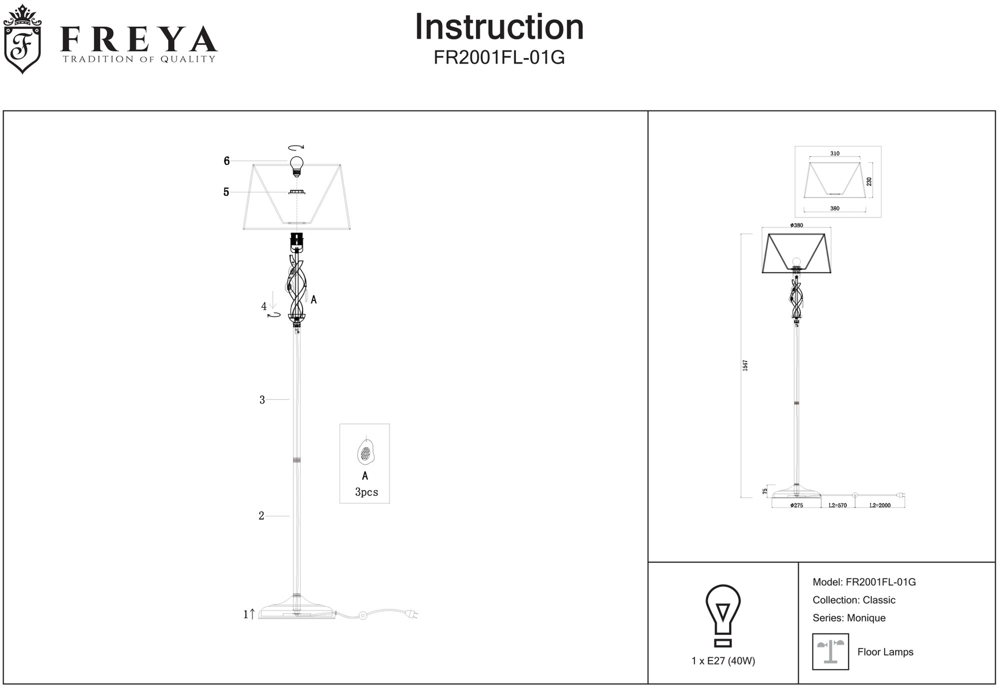 Торшер с выключателем - продукт известной компании Freya (Германия). Имеет максимальную мощность 40 Вт, освещает площадь до 2 кв. м. Отлично подойдет для таких мест, как гостиная, спальня. Впишется в интерьеры следующих стилей: классический.