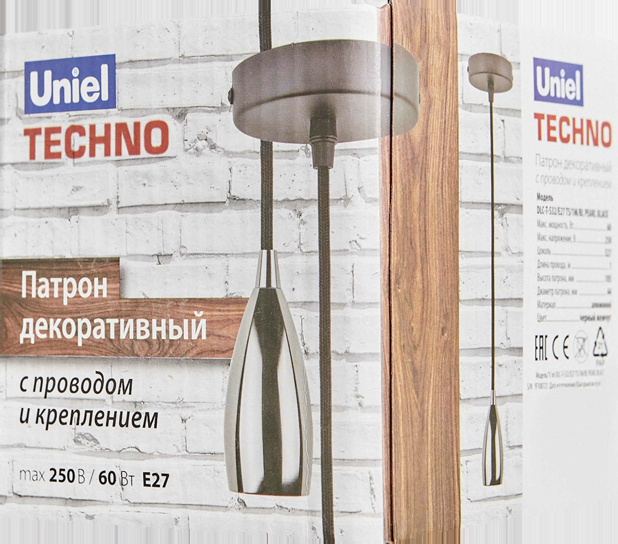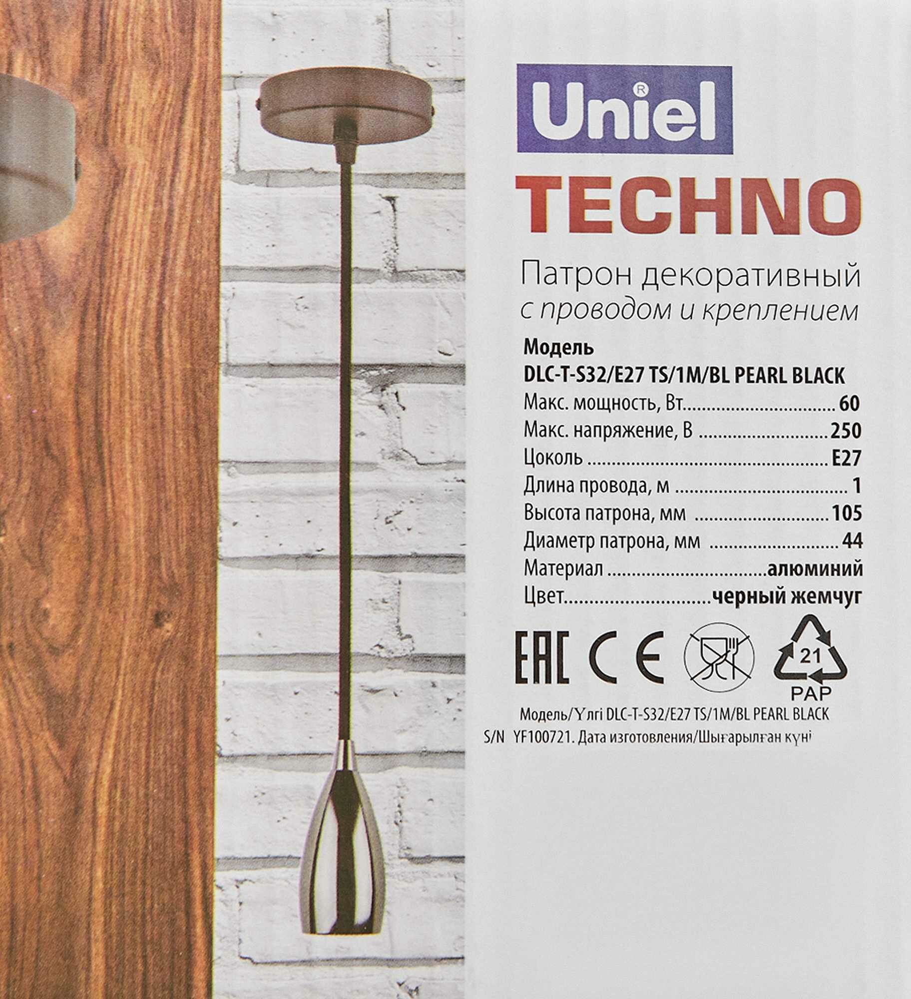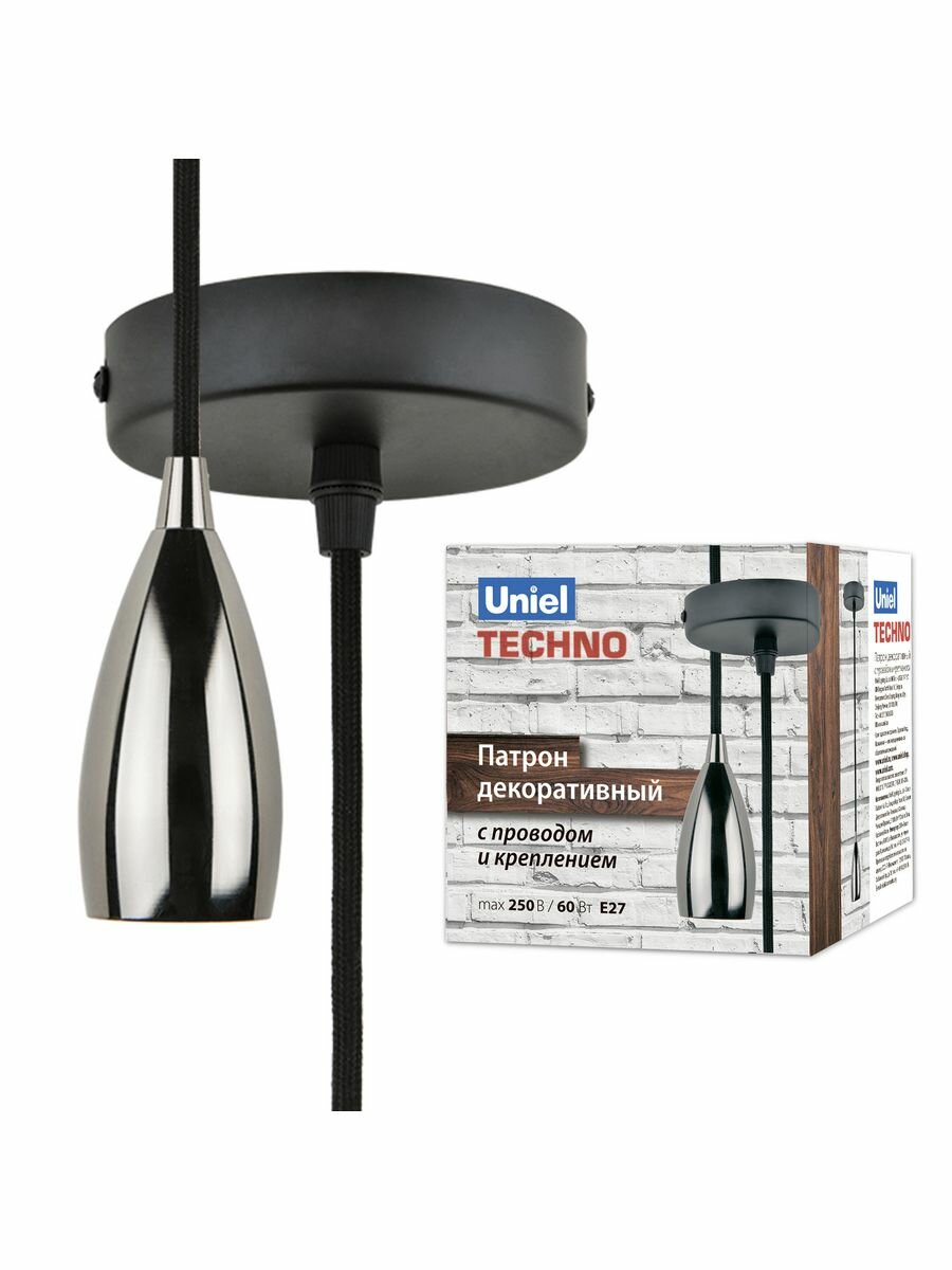 Патрон декоративный с проводом и креплением Uniel DLC-T-S32/E27 TS/1M/BL PEARL BLACK (UL-00005289) Techno DLC-T-S32/E27 TS/1M/BL PEARL BLACK