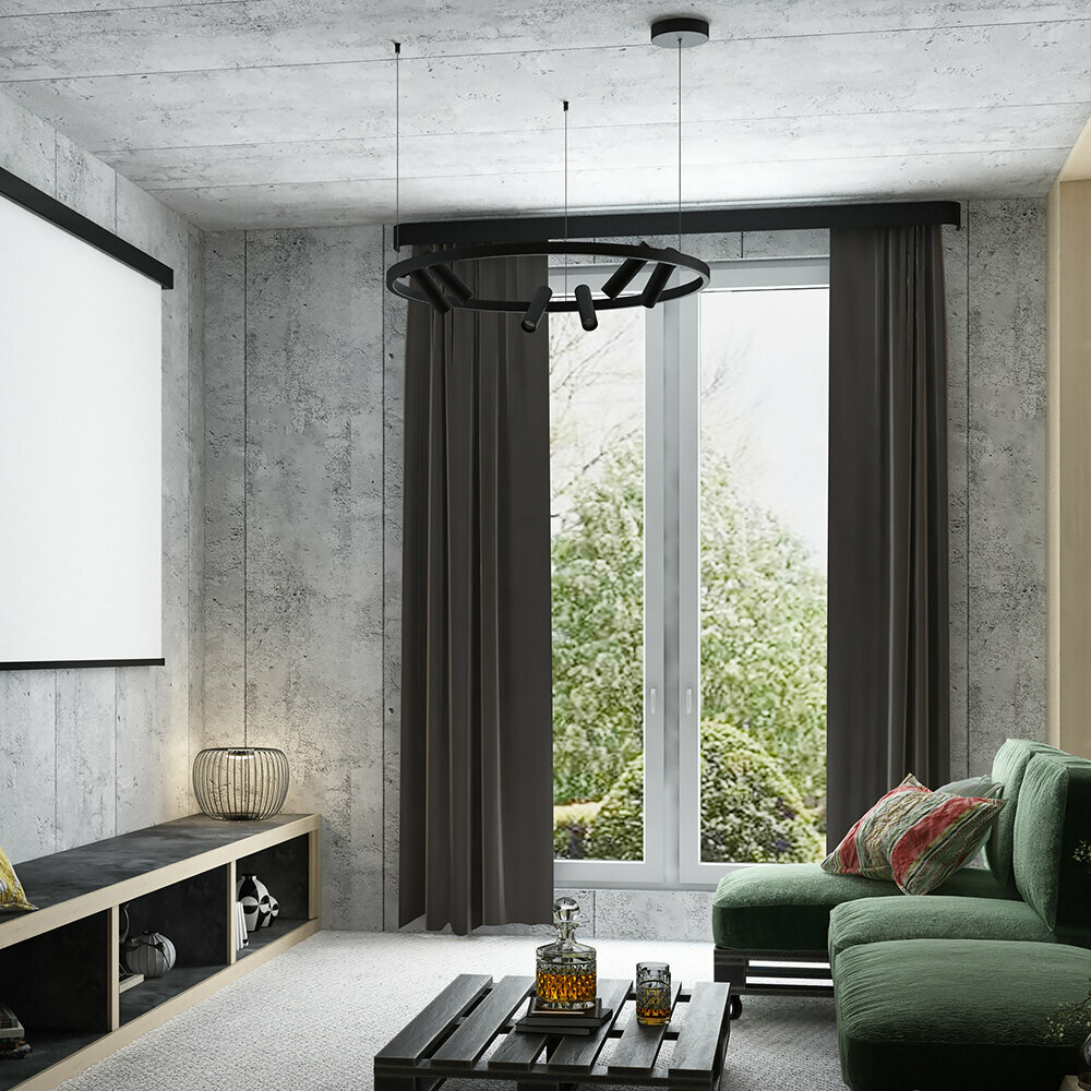 Серия светильников в стиле минимализм. Арматура выполнена из металла. Споты с LED-модулями не перемещаются по кольцу и регулируются в двух плоскостях: по горизонтали (340 градусов), по вертикали (90 градусов).
