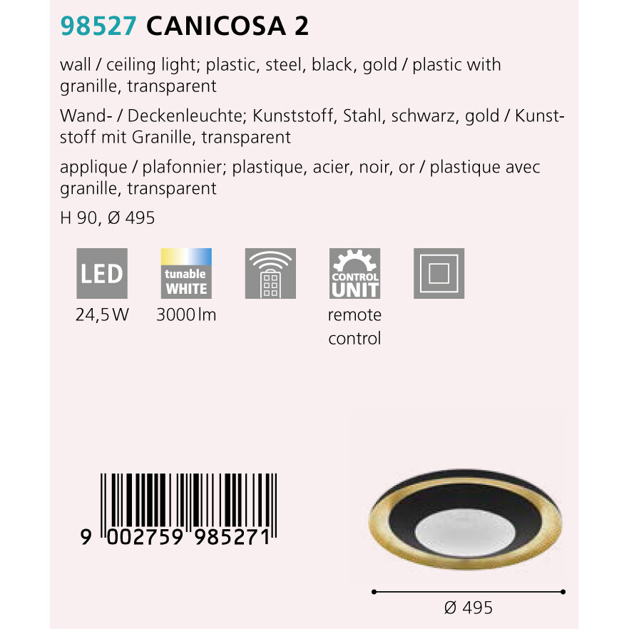 Цвет арматуры потолочного светильника Eglo CANICOSA 98527 - черный, золотой.
