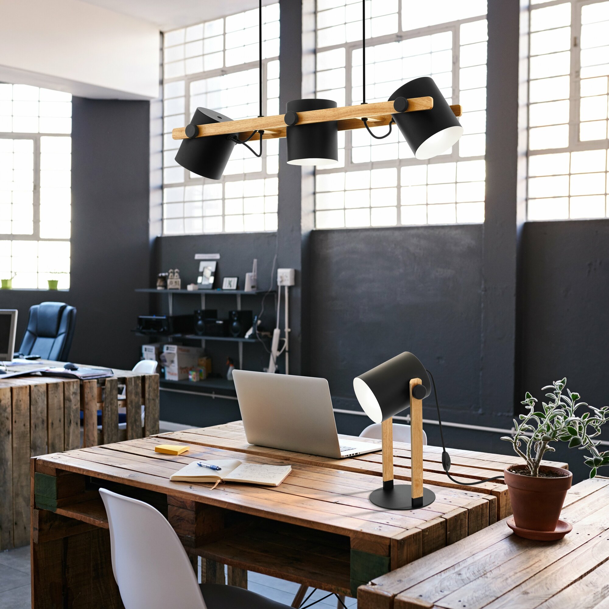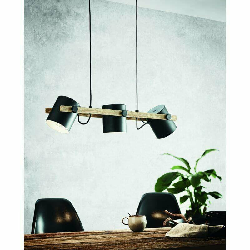Подвесной светильник ''Hornwood'' в стиле лофт с использованием натурального дуба отлично подходит для создания особенного интерьера. Стальные плафоны можно регулировать и задавать направление освещения. Декоративные винты, черные электрокабели добавляют дизайну характерности и выразительности.
