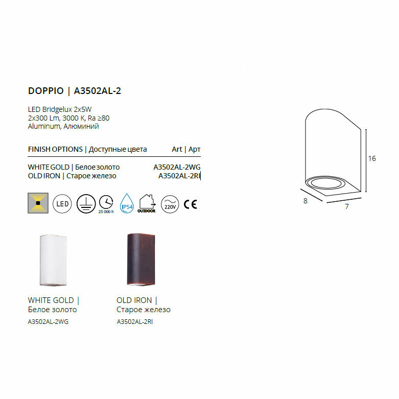 Светильник настенный ARTE Lamp A3502AL-2WG